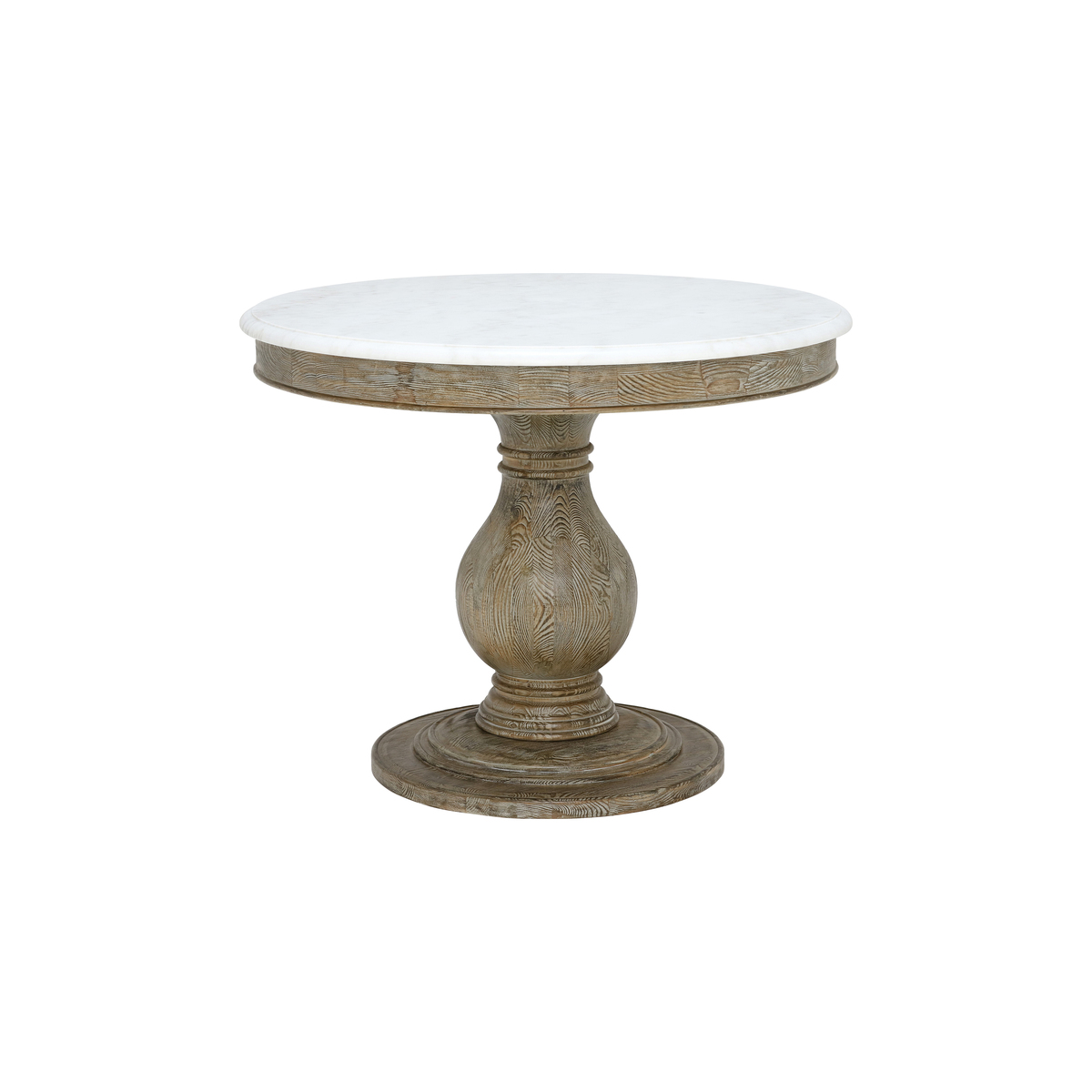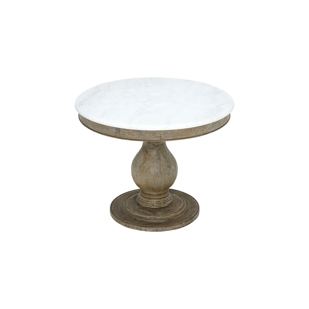 A luxurious thick top of white marble supported on a sturdy wooden pedestal base, the Woolton round dining table is ready to impress. An earl grey pine finish works wonders in accentuating the wood's charming natural grain for a truly homely feel. The Woolton is an attractive choice for delivering big style to smaller spaces – providing space for up to 4 to dine comfortably. A classic design in its smooth, natural top and turned wood base, match with suede or velvet dining chairs for a stylish modern touch.