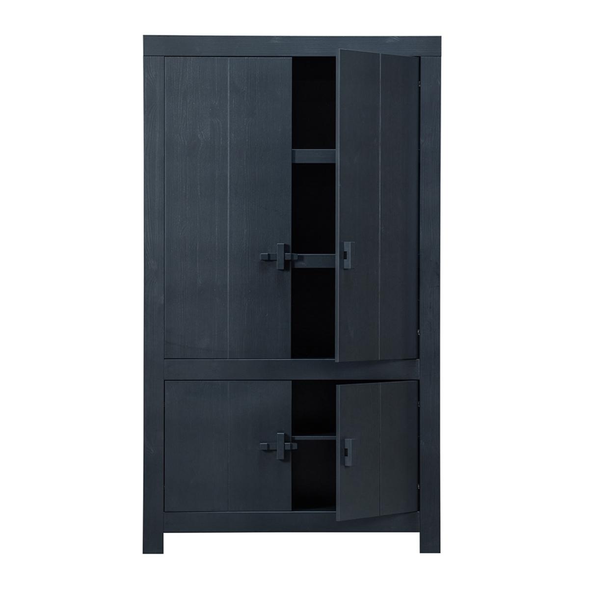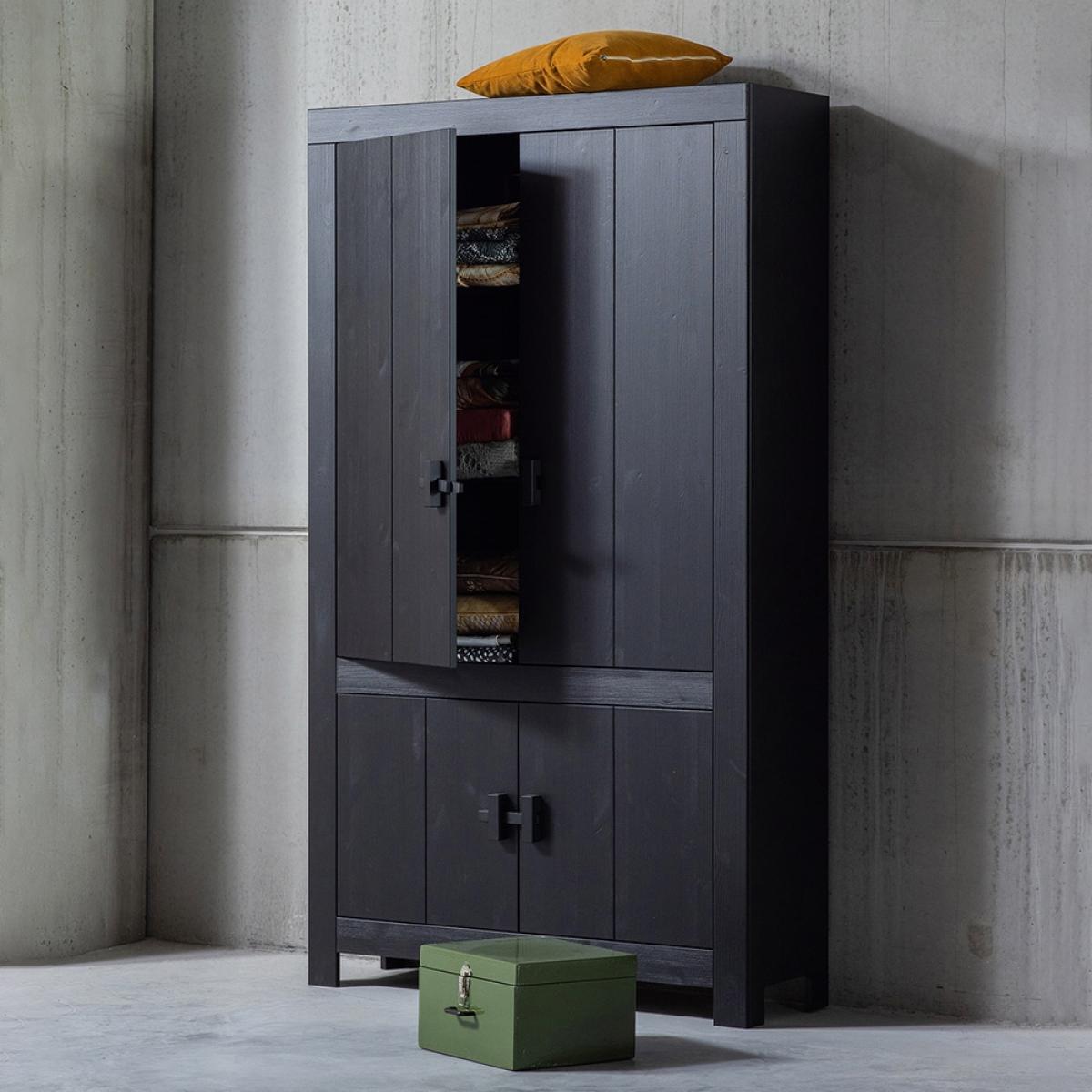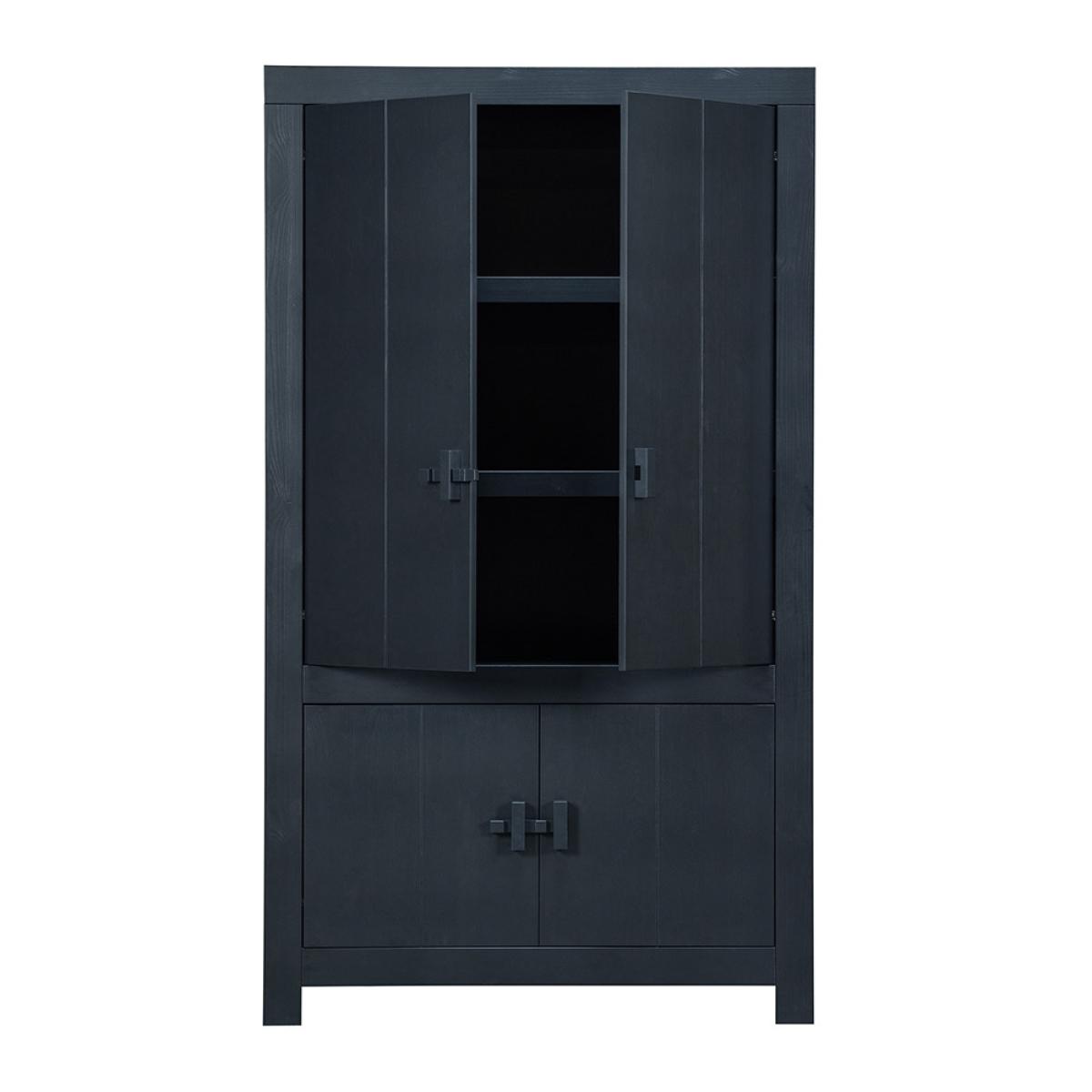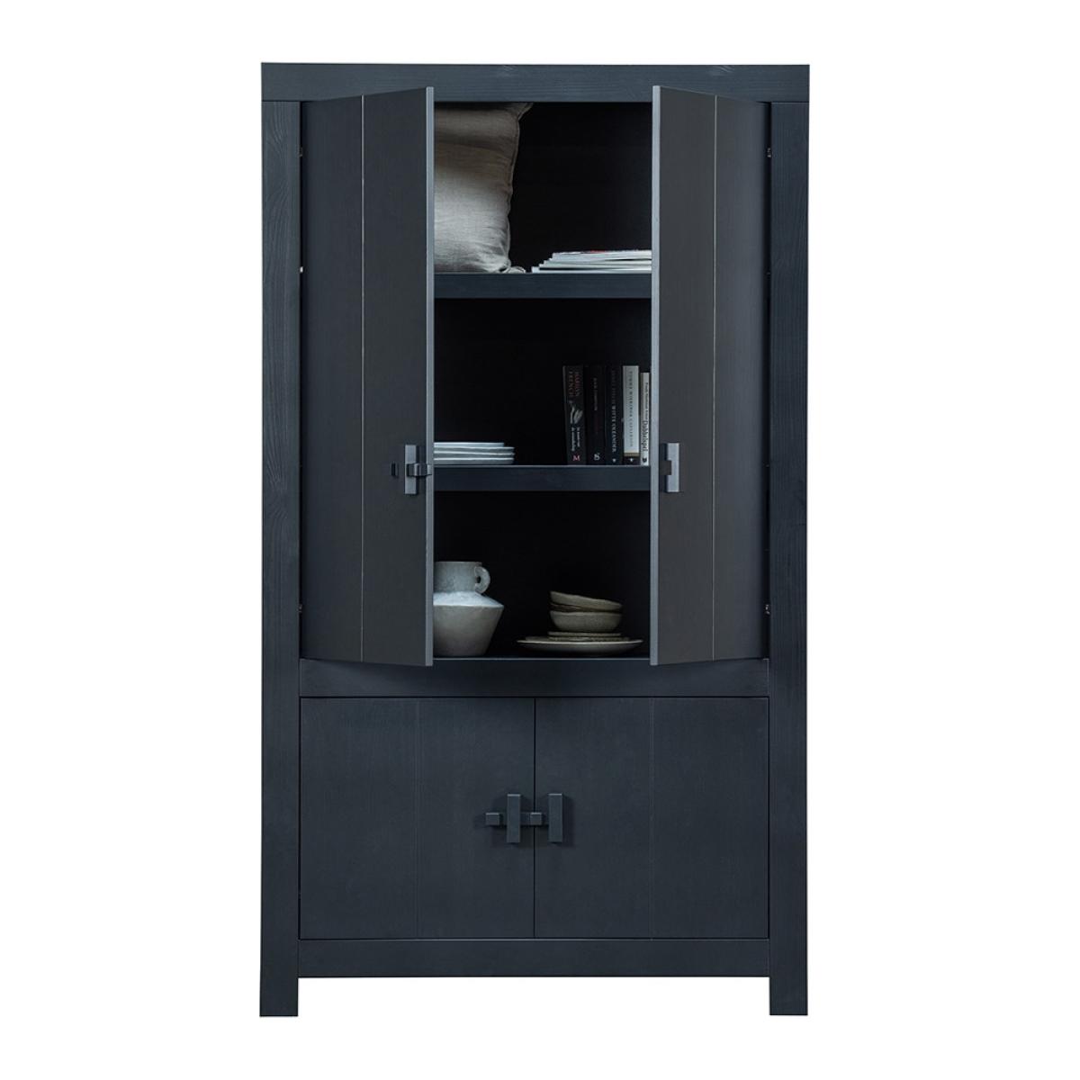 Keep your clutter at bay with the Benson Cabinet from Woood. This modern and sleek storage unit is made from FSC Scandinavian pine in a matte black finish in a weathered effect. With 2 cupboards and 5 storage compartments overall, organizing your bits and bobs has never been easier. The Benson is perfect for keeping your linen stored in the hallway or your dinnerware in the kitchen.
