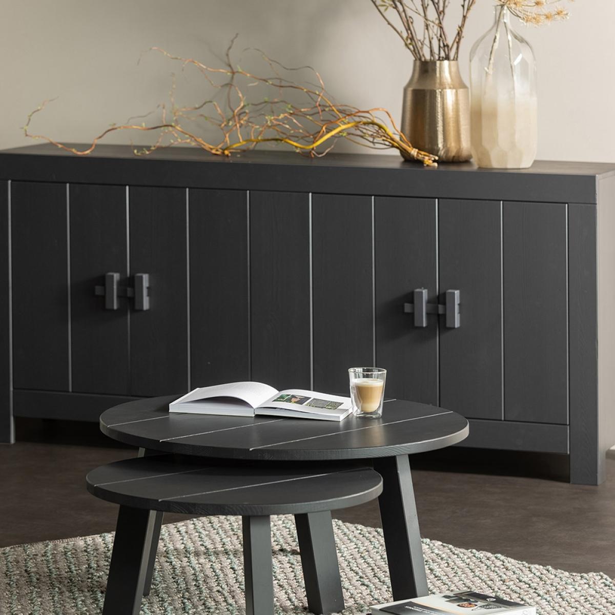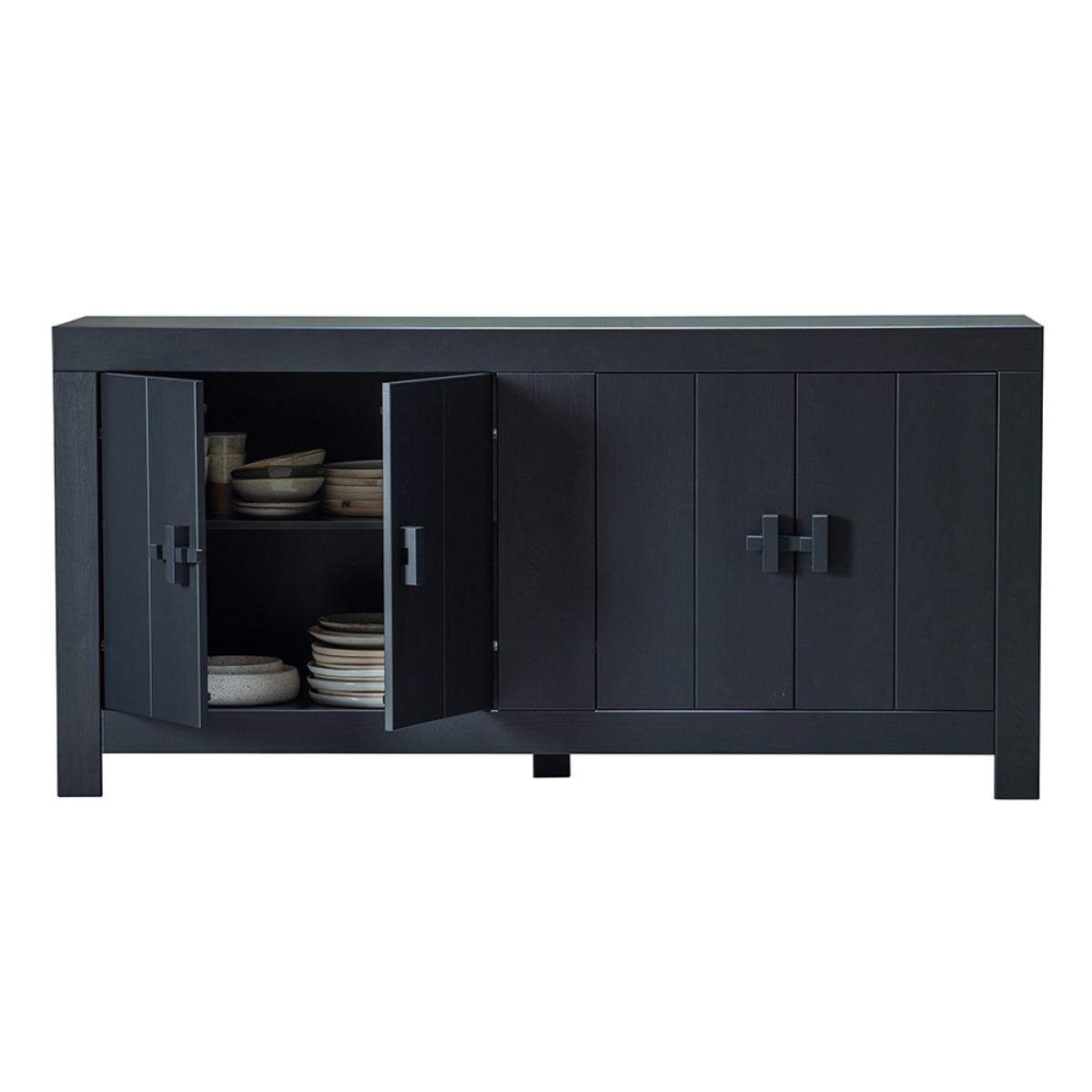 Looking for simple yet stylish storage? The Benson Sideboard from Woood is the answer to all of your prayers! Made from responsibly sourced FSC Scandinavian Pine in a weathered matte black finish, this sturdy sideboard has 4 storage compartments with 2 shelves to store your treasures and clutter. Perfect for your living room, hallway or bedroom. The options are endless with this versatile cabinet!.