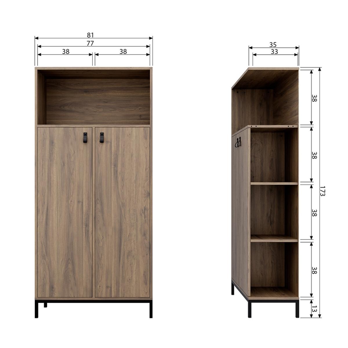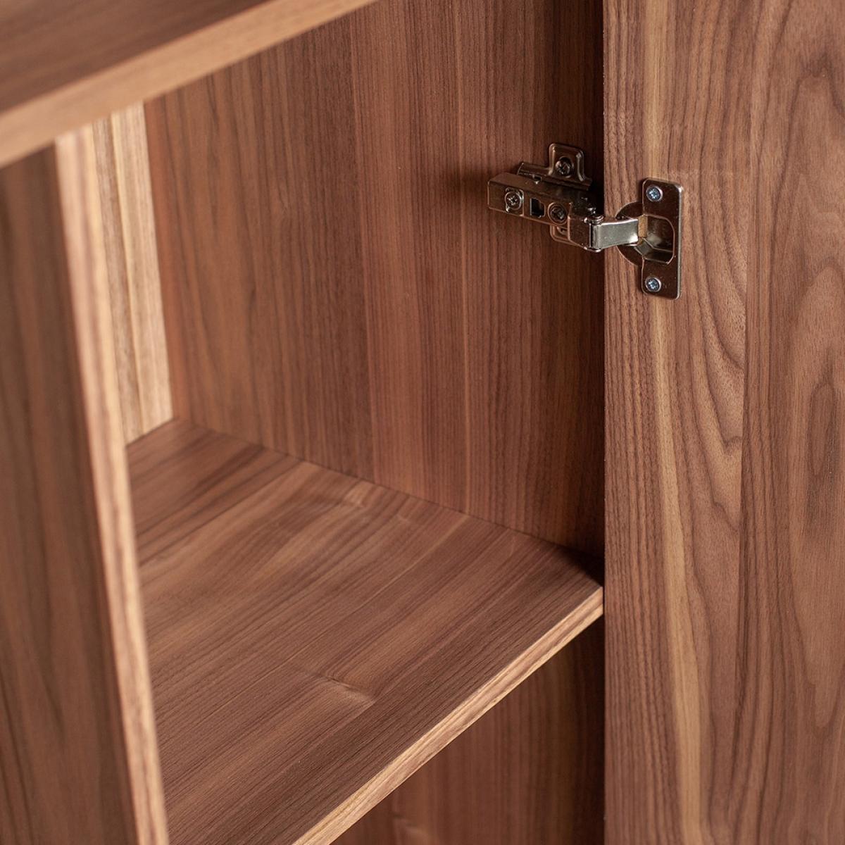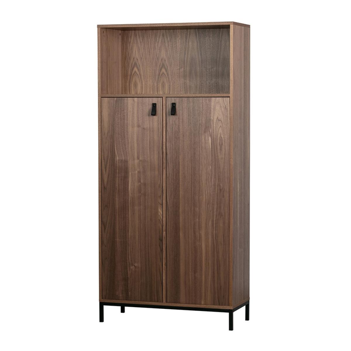 The ultimate cabinet for any book lover, the Woood Bookazine Bookcase is just what you need to home all those hardbacks! Not only a stylish storage solution but a practical one too; featuring double doors with 3 fixed shelves inside. You'll be in heaven with the amount of space this unit contains. Besides a place to display your favourite books, fill the top compartment with decorations, photo frames and pretty pansies for all to see! Crafted from walnut veneer in a brown finish paired with black metal legs; your space will be bursting full of industrial character!.