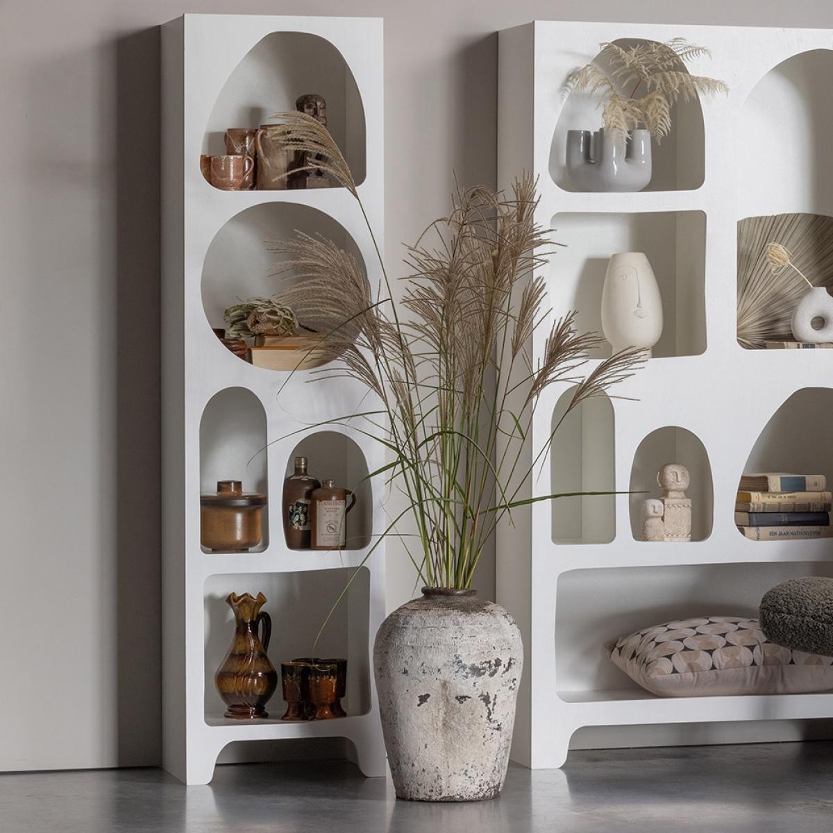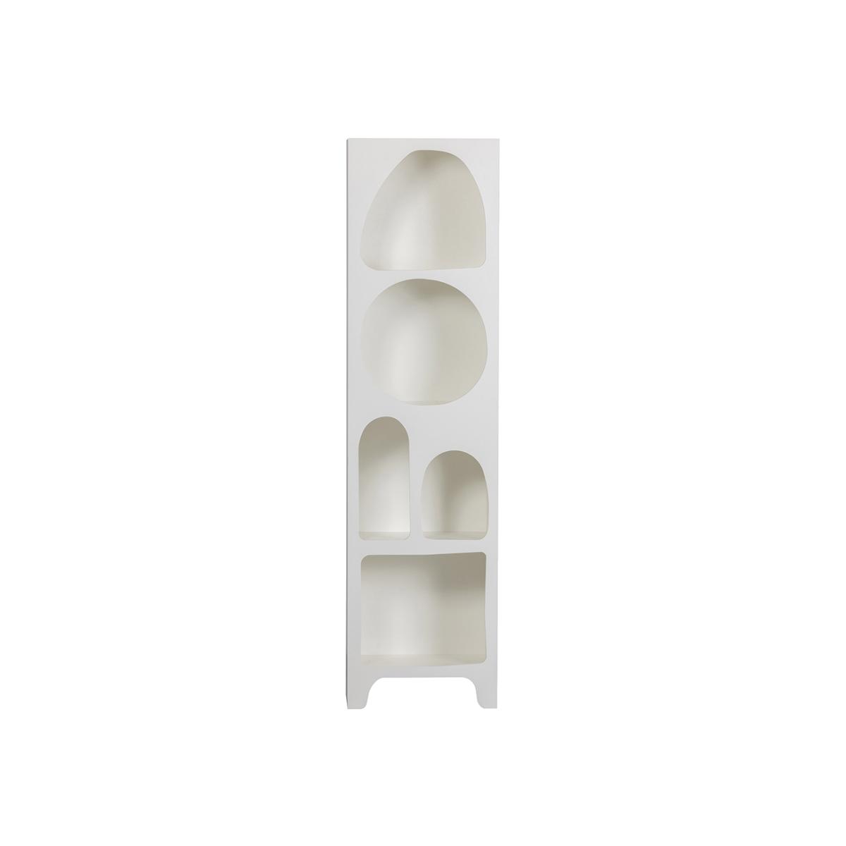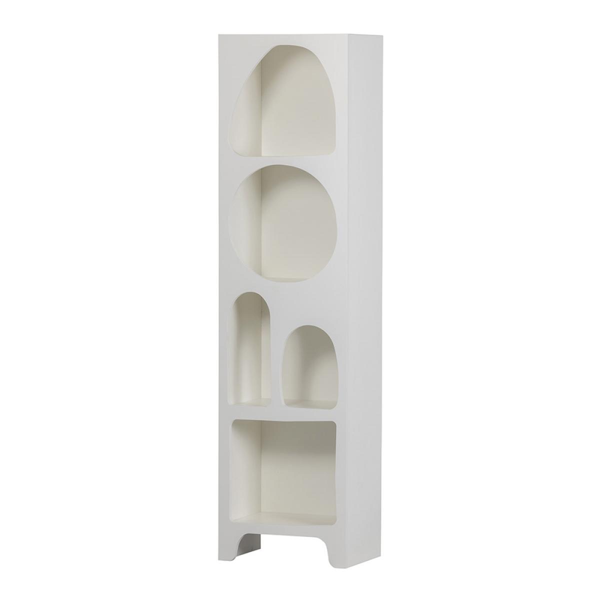 Add a sprinkle of magic to your home with the trendy and contemporary Caz Small Display Cabinet From Woood. Inspired by cave dwellings and natural formations from all over the world, the Caz cabinet is made of plywood with a white finish, 5 storage compartments and the generous dimensions of the cabinet make it a real eye-catcher. Perfect for all of your trinkets and pictures from your travels, sentimental items passed down from generations or to display a crystal or fossil collection!.