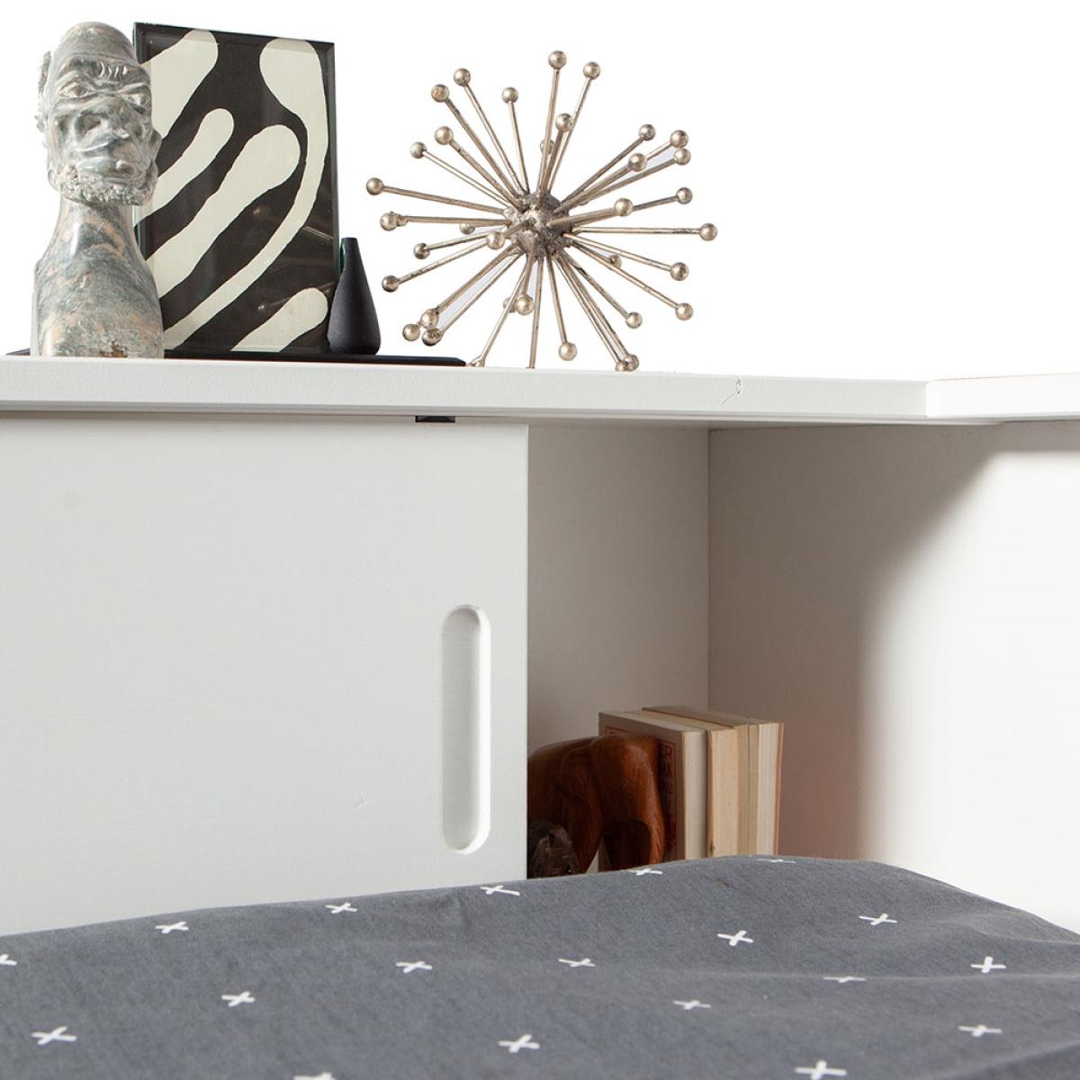 I love this single bed for its clever use of space and versatile design, making it perfect for smaller rooms or shared spaces. Its crisp white finish lends itself well to both modern and Scandi interiors, easily pairing with colourful bedding or soft textures for a cosy feel. Practical styling tips include adding layered bedding with patterned cushions or throws to soften the look and injecting personality through accessories like wall art or a small bedside lamp. It’s a highly functional piece that combines smart storage options for toys or books, helping to keep the room tidy while still offering a clean, minimalist aesthetic.