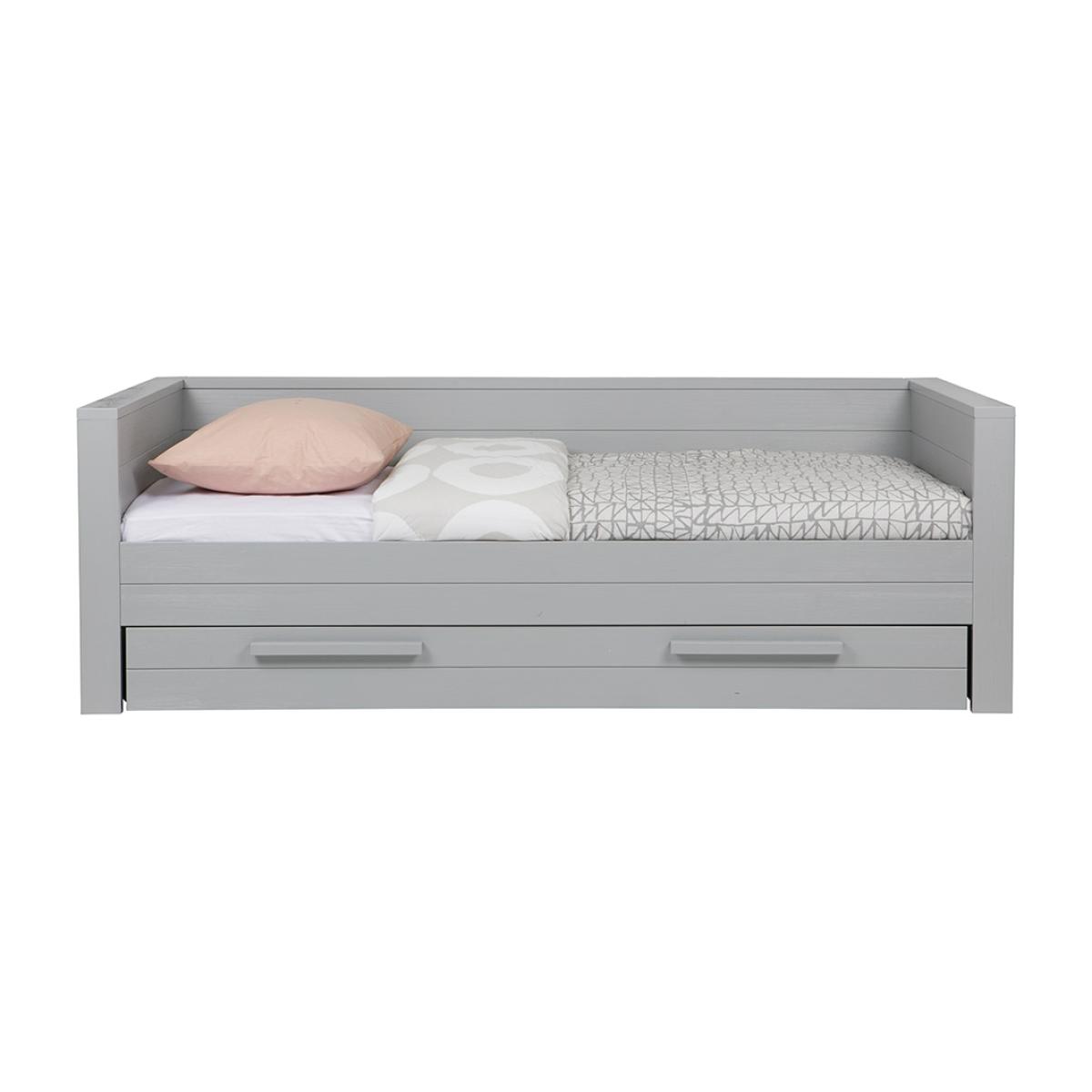 Take your naps to the next level with this gorgeous Dennis Solid Pine Day Bed from Woood. Use it in the living room and have it function as a sofa or as a bed for visiting guests, better yet use it for yourself and relaxing on those lazy Sundays. The high quality responsibly sourced wood makes it stylish, practical and sleek, whilst the optional trundle drawer gives you that added bit of storage. A great piece of. Furniture. For the kids to relax in on movie nights. The Dennis Collection is one of the best selling collections from Woood in Europe and has a matching wardrobe, desk, storage box and bedside cabinet. This bed comes as standard with one set of slats for the top bed, if you are buying the additional trundle drawer it comes with a solid base, however, if you're planning on using the trundle long term as a second bed, we'd recommend that you purchase an additional set of slats for support.