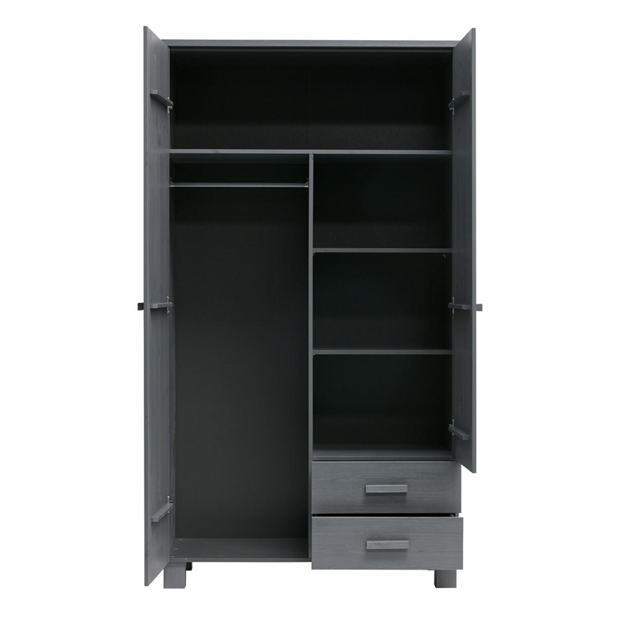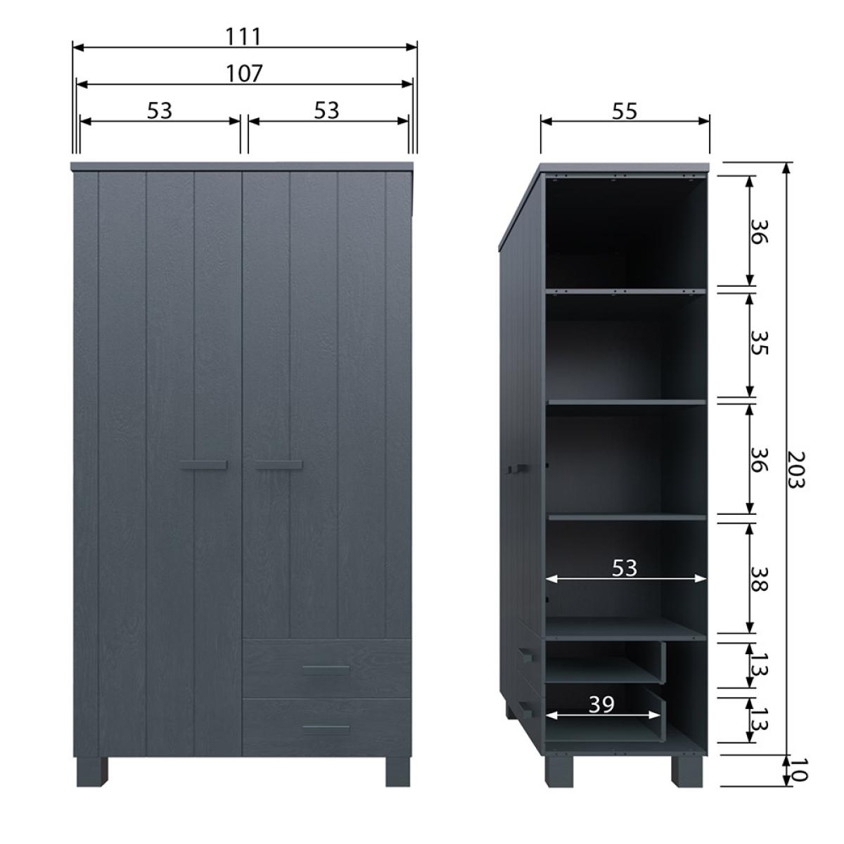 The Dennis Wardrobe with Drawers is one stylish storage solution for any bedroom. With one side featuring hanging space and the other having three compartments, everything will have its place. The shelf above is perfect for toys or blankets whilst the two drawers below are perfect for socks and undies! Manufactured using only the highest quality responsibly sourced FSC Mix wood and available in Steel Grey or Concrete Grey it would work beautifully in any interior style! With other gorgeous pieces in the Dennis range, you could give your littluns bedroom a complete makeover!.