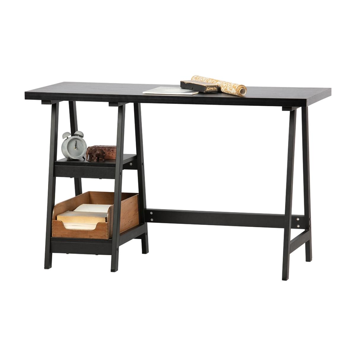 Keep yourself motivated with the Duco Desk from Woood, working from home will be easy when you've got this desk to sit at. With a simple black finish and sleek design, there will be no distractions whilst hard at work. A tidy desk, a tidy mind. So keep that table top clutter free with the storage shelves at the side, perfect for holding documents and files. Whether used for homework, as a computer desk or paying those bills, Duco will be happy to assist.