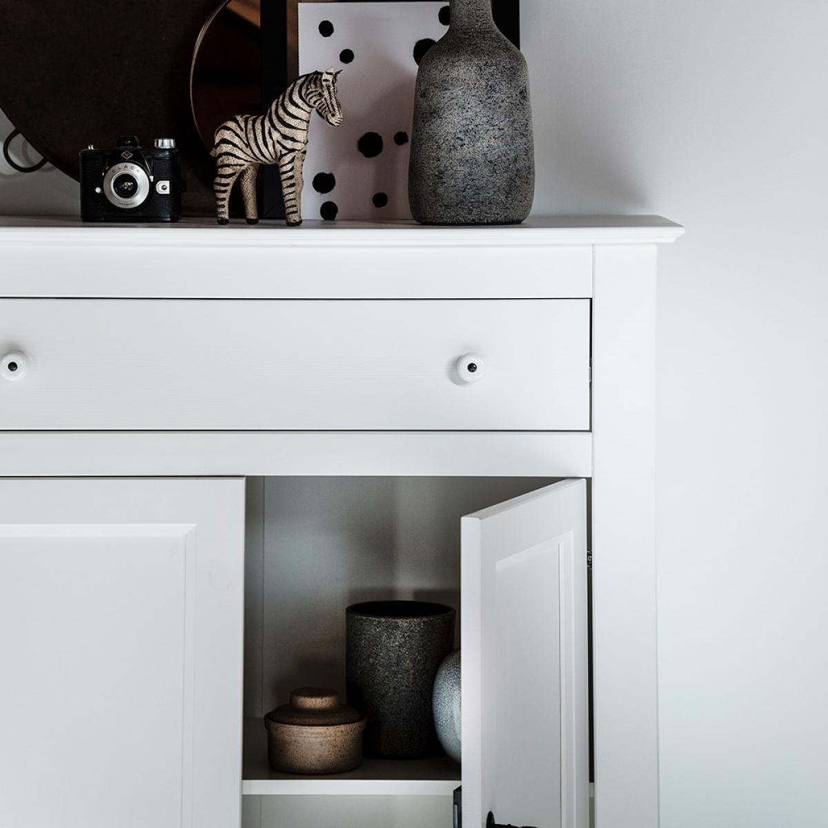Storage has never looked so good! The Eva Pine Cabinet by Woood is a real timeless beauty and will add a touch of elegance to any room it graces. Not only is she pretty but practical too! Inside the cupboard are three wide shelves, perfect for tidying away all of those keepsakes. But if you have something a little more important to stash, you'll be pleased to know the Eva is also equipped with a lock and key so your treasured items will be tucked away safely. To top it all off the Eva also has a handy draw with contrasting porcelain knobs, what more could you want?. Features and Benefits:.