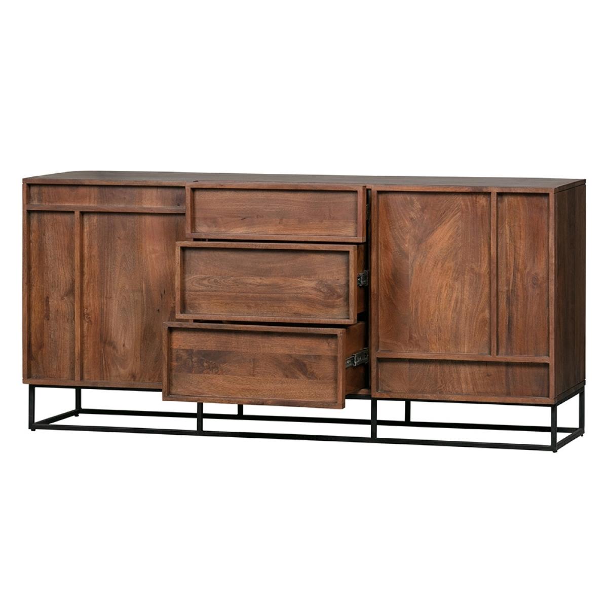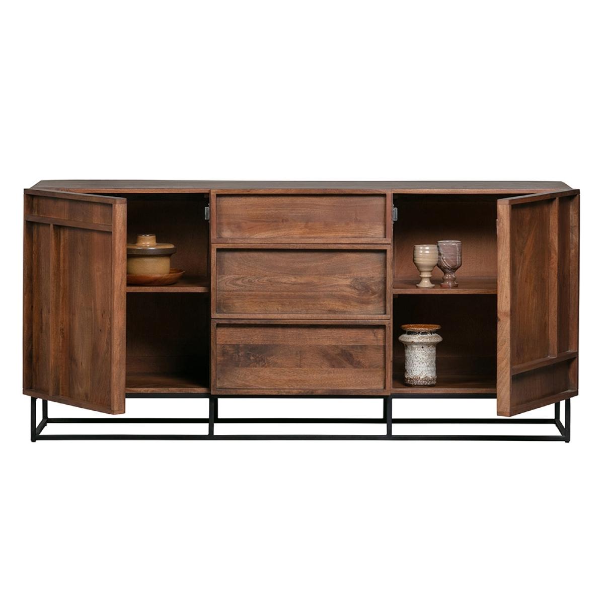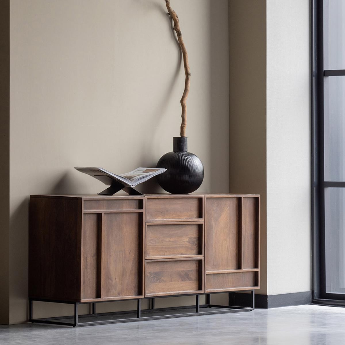 TheForrest 2 Door Sideboard with Drawers from Woood has some seriously stylish characteristics! Combining a sleek metal base with solid mango wood, this beauty would look delightful in most interiors. With 3 solid drawers and 2 side cupboards, storage space will not be an issue. So no more excuses for random bits and bobs around the house! Perfect for the dining room for storing your best china and ceramics. Don't just limit it there though, it would look equally as stylish in your hallway, bedroom or even in the kitchen! Utilise the top of the unit to display funky candles, vases and some house plants. Flourish with whatever works for you!.