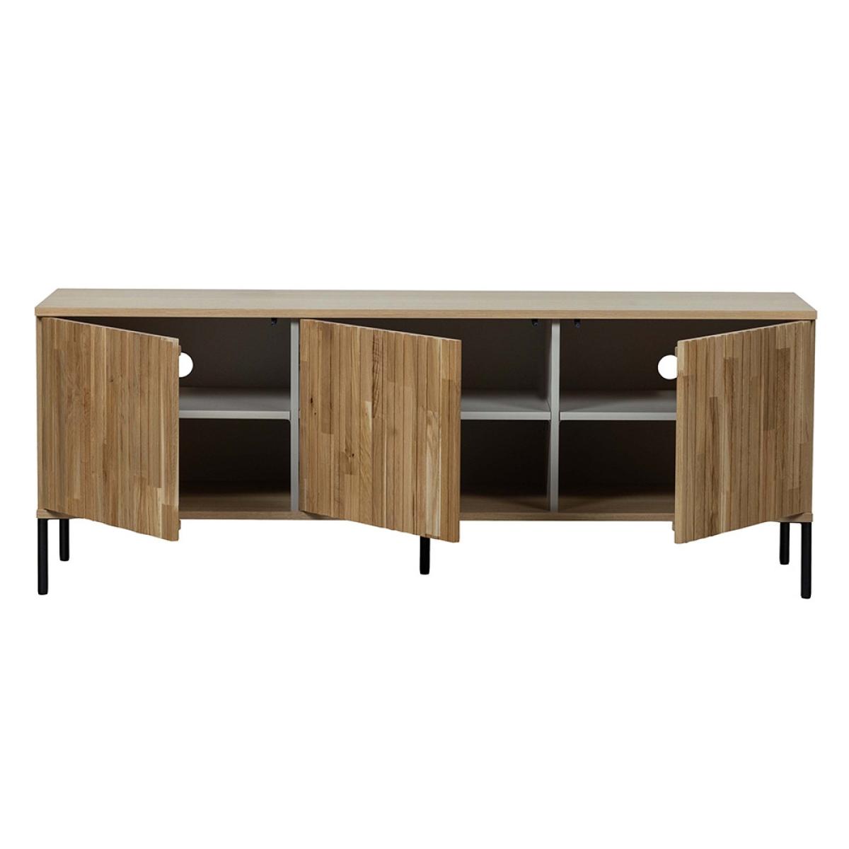 Sit your TV proudly a top the Gravure TV Stand from Woood, this stylish piece of furniture is sure to look stunning in your living room. Beautifully crafted in a choice of wood finishes, featuring three doors with textured fronts, there will be plenty of space for you to create the perfect entertainment station. Complete with shelves in each compartment, keeping your games consoles, DVD player and DVD's organised will be one easy task! So get the popcorn popped, the sweets at the ready and sit down and relax with the family.