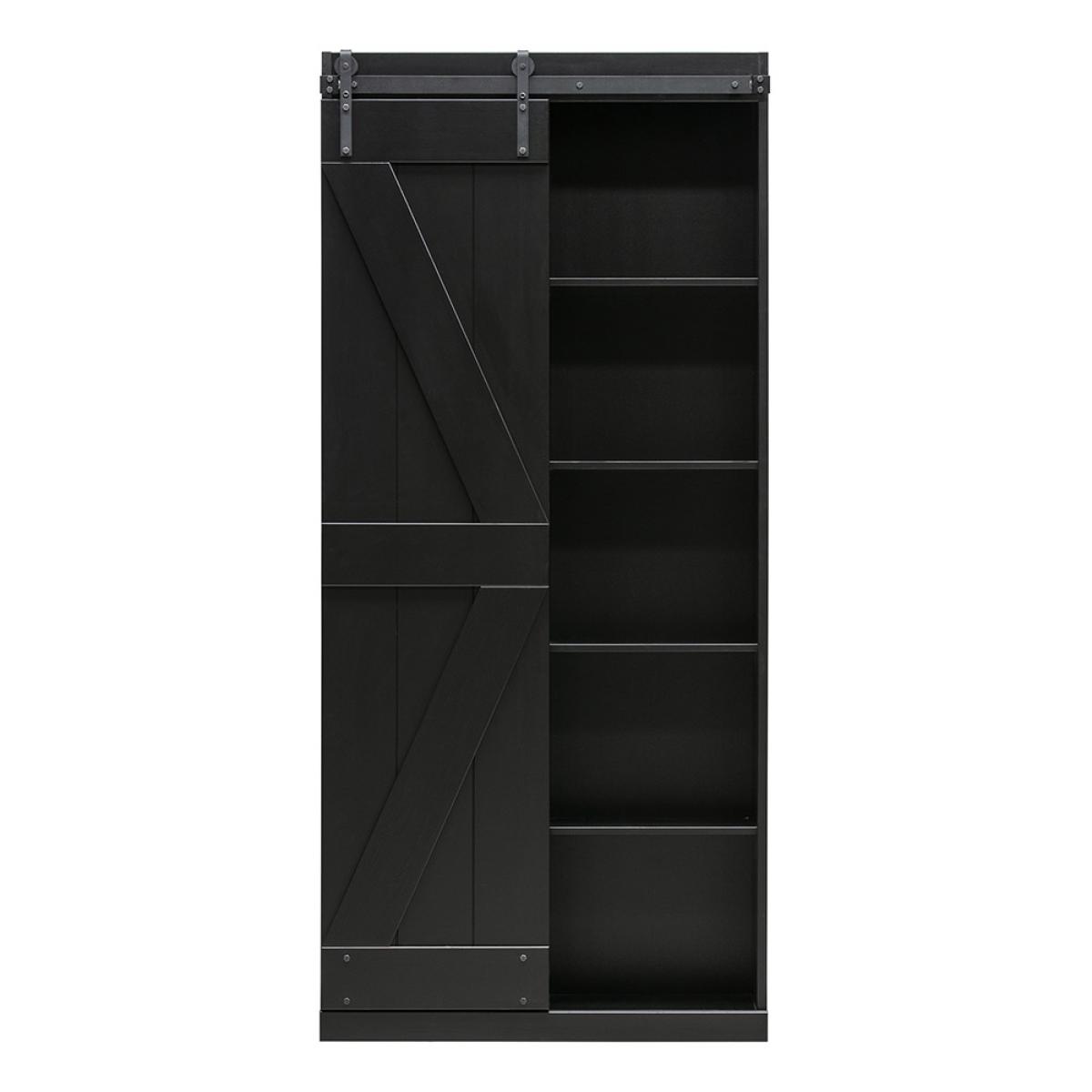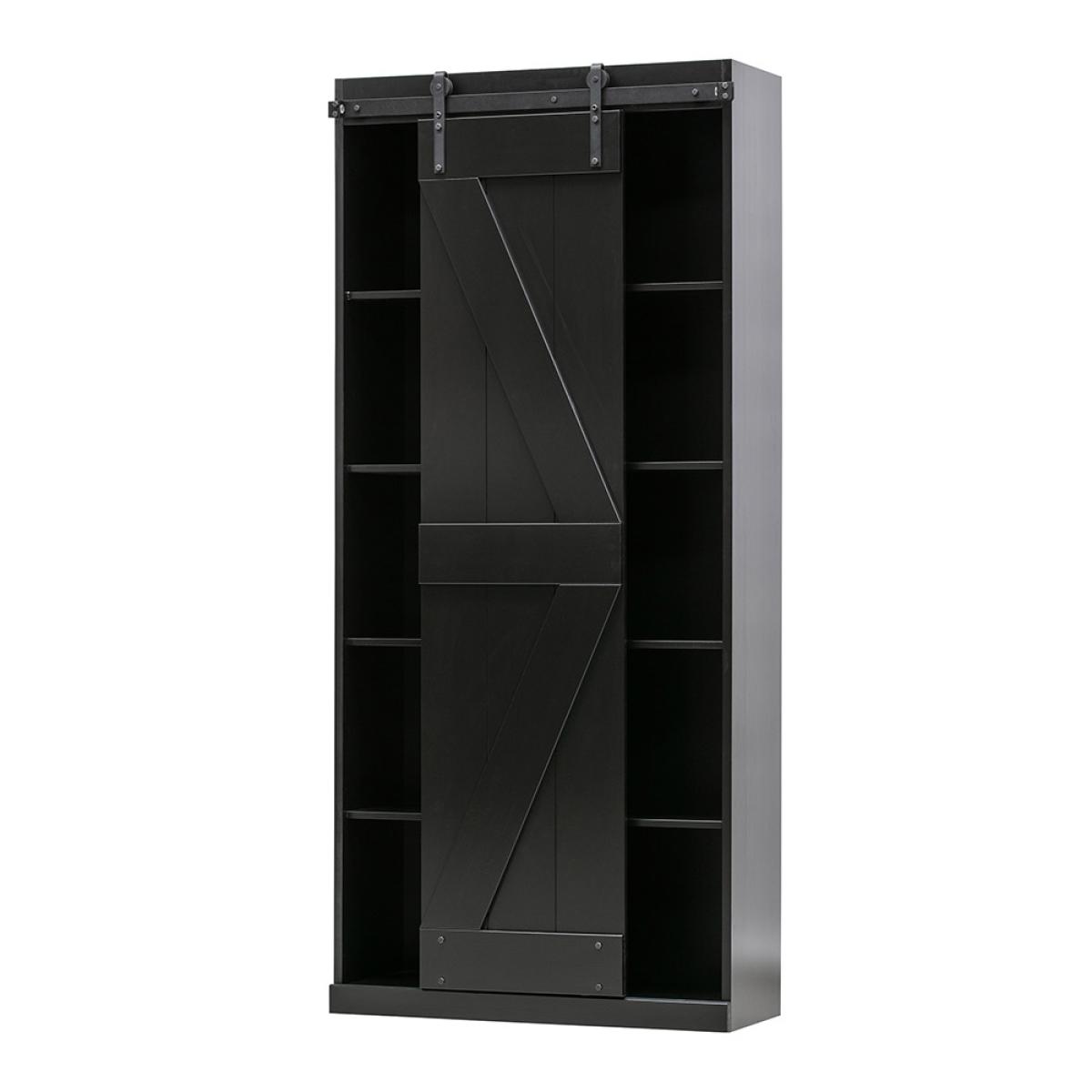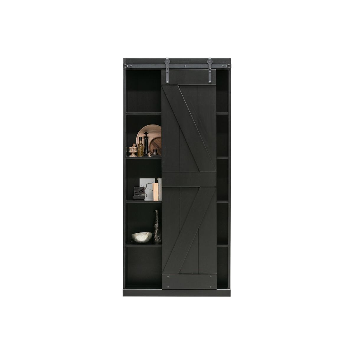 Keep all your bits and pieces handily stored away with the Harris Sliding Door Cabinet from Woood. Manufactured from high quality responsibly sourced FSC pine wood with a black finish; a rustic overall style, this cabinet will take the limelight wherever placed; from the living room to the kitchen you'll appreciate its appearance just about anywhere and everywhere. With 10 storage compartments inside, you'll be spoilt for space and thanks to the sliding door, reaching that new read or even better those naughty night time nibbles just become easier. Bonus!.