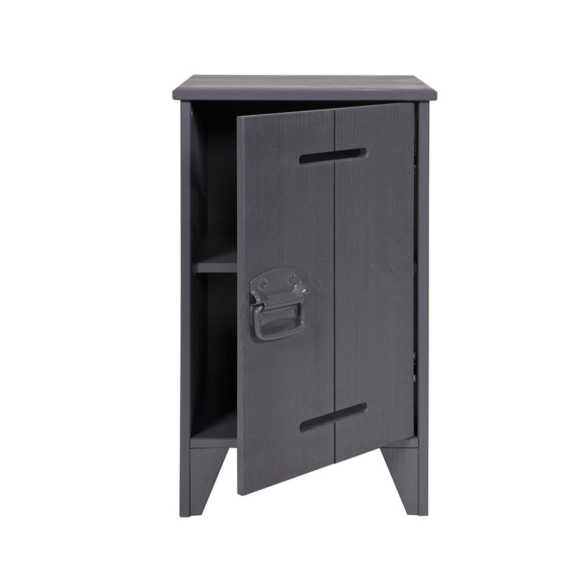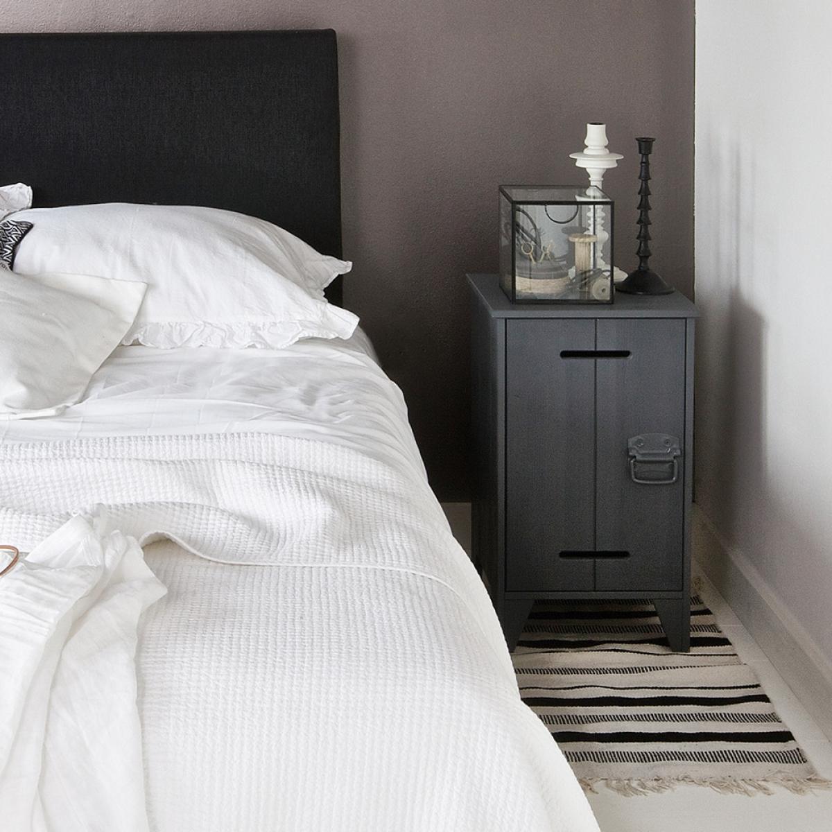 Keep your nighttime essentials close by with the Kluis Bedside Table from Woood, the perfect little companion to put beside your bed. Beautifully made from brushed pine with a steel grey finish, this contemporary cabinet will be a welcome addition. The ideal spot to pop your latest read and with plenty of space for a bedside lamp you'll have no more fumbling around in the dark for that glass of water! Plus, with a cupboard including a shelf, store your bits and bobs neatly away.