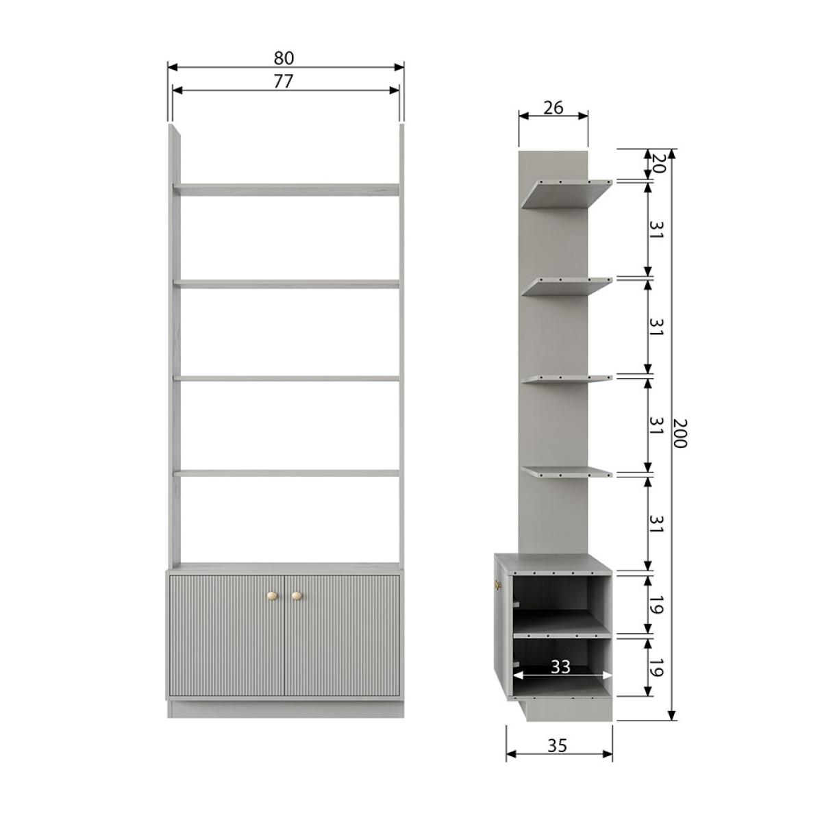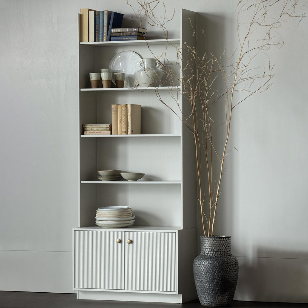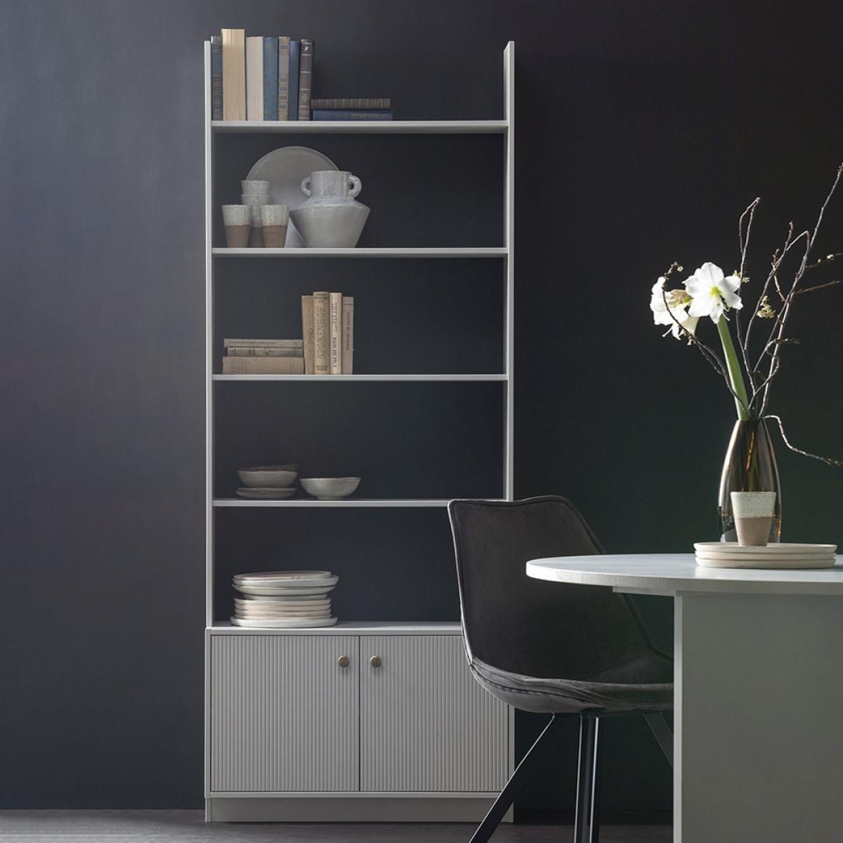 Give your books a glow-up with the Madu Bookcase from Woood! Finished in cloud grey with gold accent handles and made from FSC pinewood you can be assured this stylish unit will stand the test of time. Why not showcase your book collection and collectables in your living room or use it to store documents and important files in a home office?.