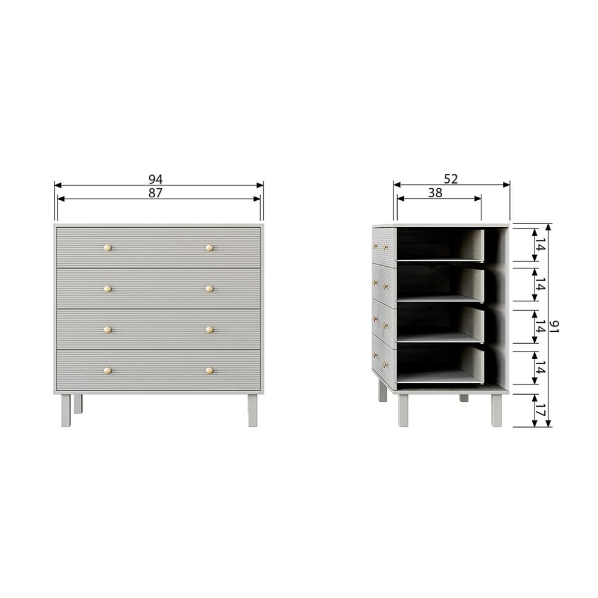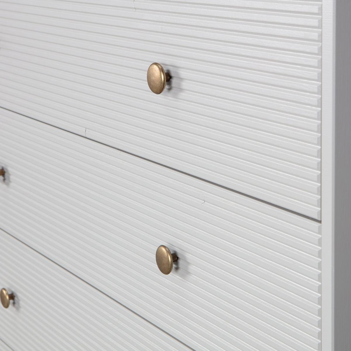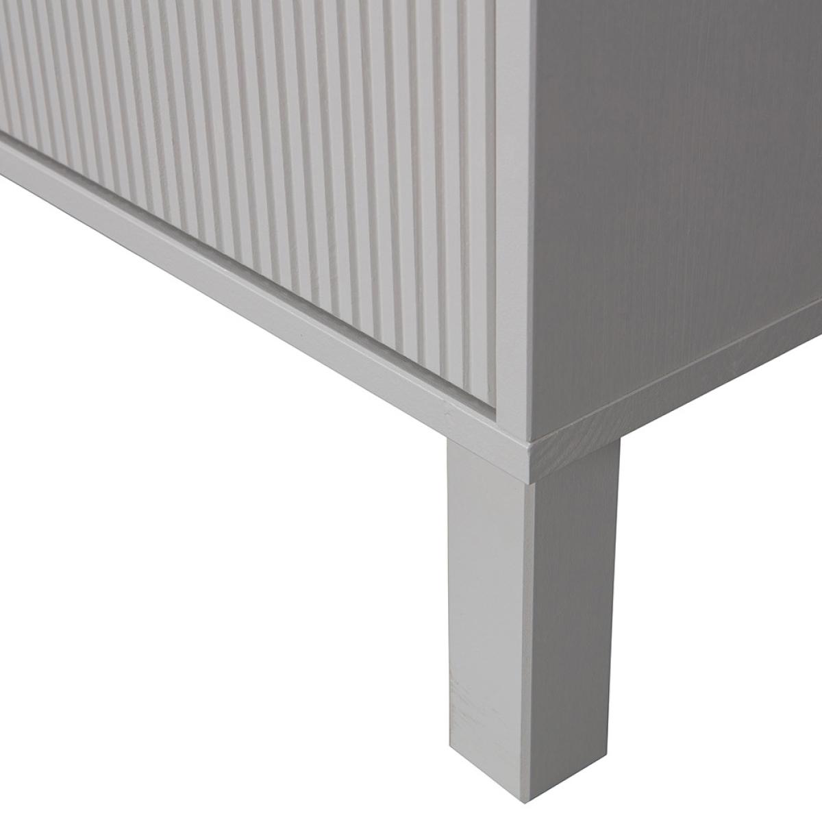 Add some modern glamour to your home with the Madu Chest of Drawers from Woood. Crafted from FSC Pinewood in a timeless cloud grey finish with statement ribbed drawers and gold handles, this chic and sturdy cabinet is perfect for storing clothes and accessories in your bedroom or for your living room to keep clutter at bay. Pair this with other products from the Madu range for a chic and contemporary interior.