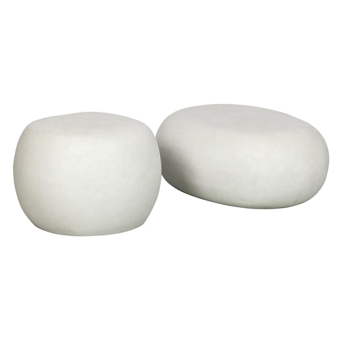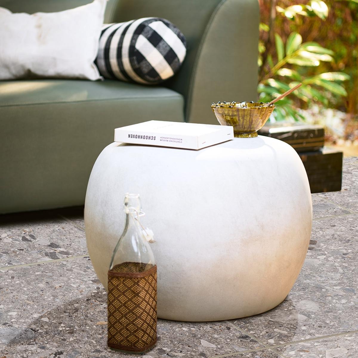 Lover of organic design? The Woood Pebble Coffee Table will be right up your street! Available in 2 sizes, the smooth pebble side tables look like they've just washed up on a tropical beach, but in reality they've been sculpted from fibre clay and styled in white. Giving a concrete effect finish, the domed design begs to be admired. Bringing a natural softness to your interiors, it's possible to pop one outside too! We'd just recommend covering when not in use. Top with other rustic accessories, decor and candle holders to create an effortless look in your chosen space.