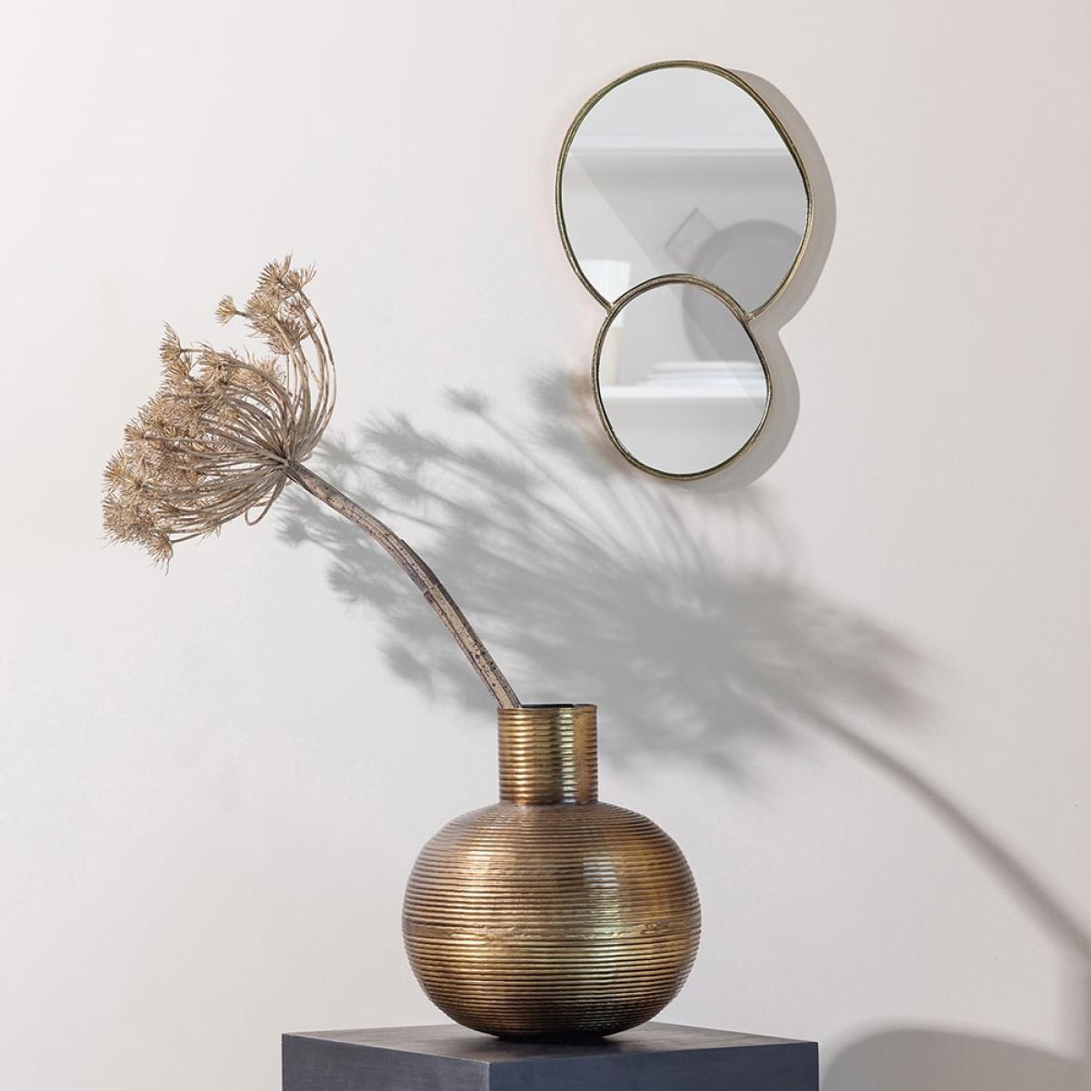One mirror, but twice as stylish - the Woood Shay Double Mirror does not disappoint! Featuring a metal frame with gold finish, the organic shaped mirror has been given a glow up! Giving you the option to hang horizontally or vertically - make yours part of a gallery wall, lift and lighten the hallway or use as a decorative addition in the bathroom. Don't fancy hammering nails into the walls? Prop yours up instead. It will still look just as glam!.