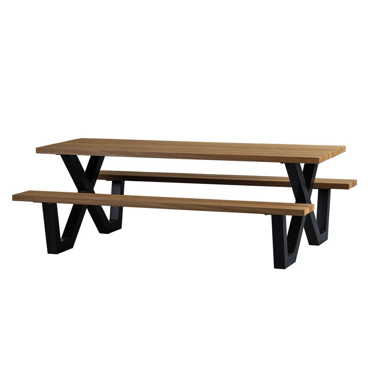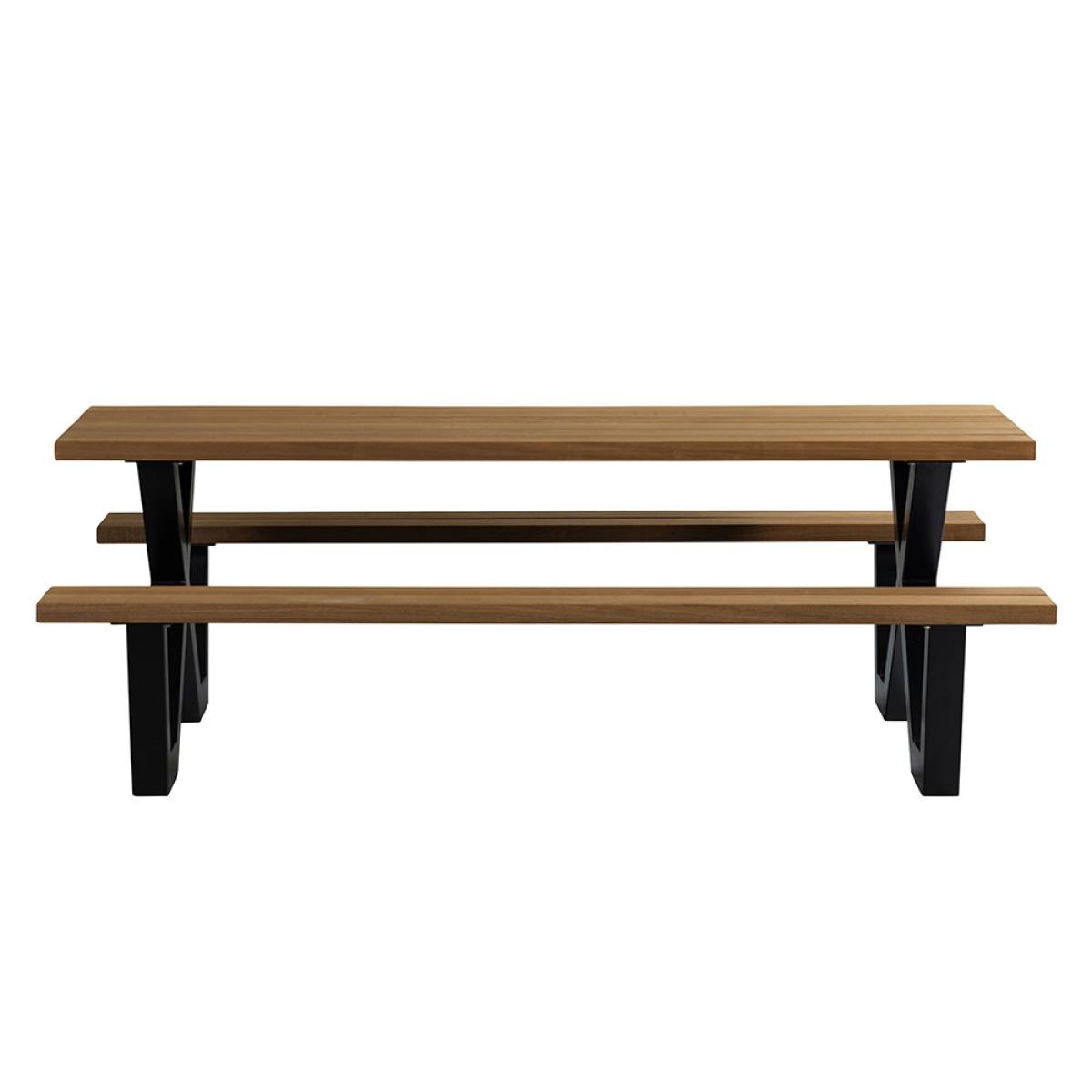 Soak up that summer sun gathered around the Tablo Outdoor Picnic Table from Woood. A modern take on the classic picnic table, with its X-shaped steel frame and gorgeous solid wood table top and seat it is sure to look stunning in your garden. Crafted using African softwood, over time this table will gradually fade to an even grey colour leaving you with a that will last for years to come. So grab the family, get that barbeque going and let the feast begin.
