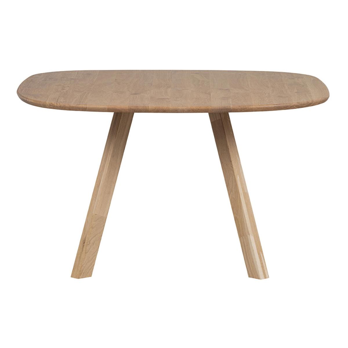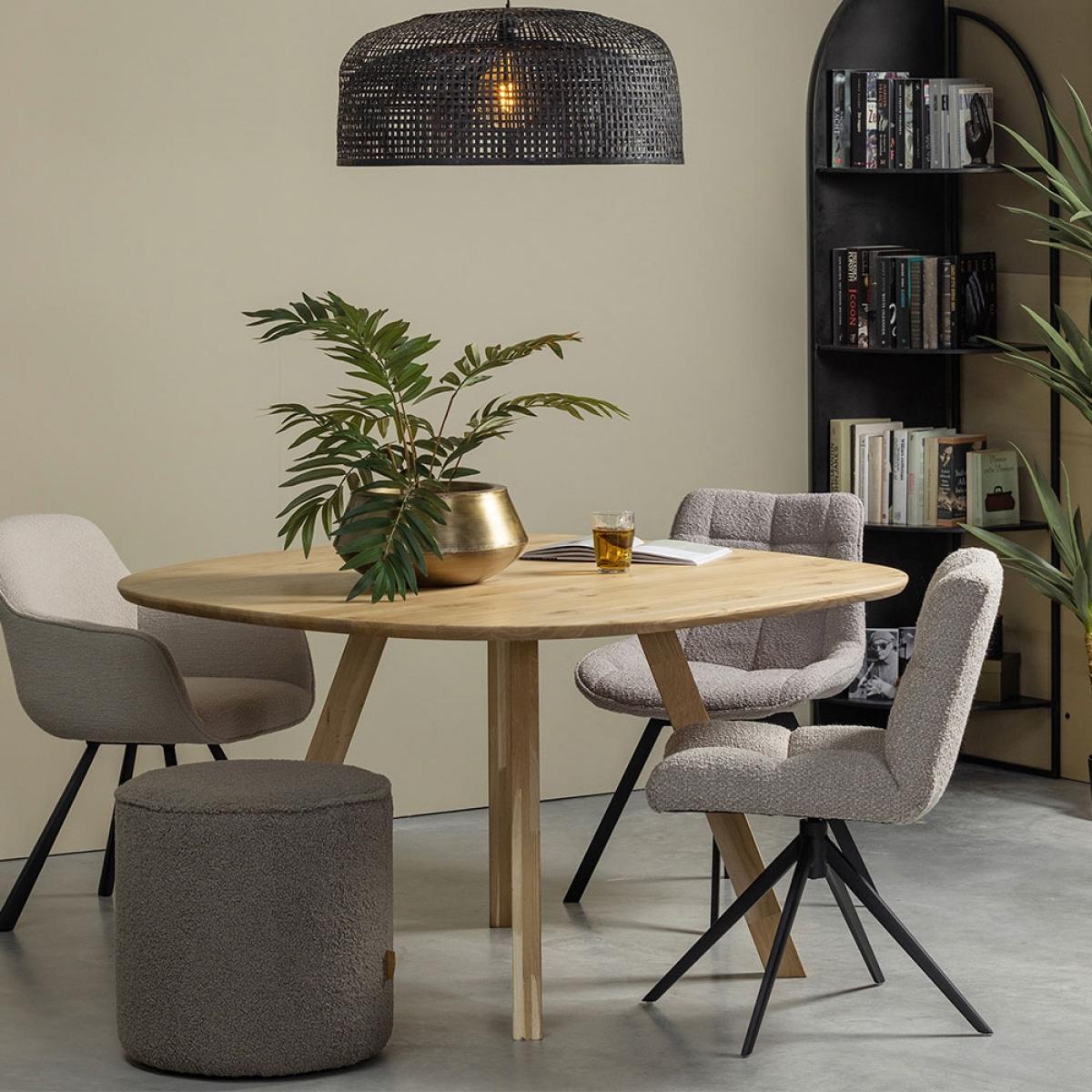 Sort of circular, but named the Tablo Square Oak Dining Table. Woood couldn't decide which shape to choose. So they fused them both! (Squarcular didn't have the same ring to it!) The rounded corners and organic shape lend themselves perfectly to the responsibly sourced oak wood it's made from. The angled legs create more room for your dining chairs too - so polite of them! Style the oak wood table with your choice of dinnerware and admire the natural patterns and exposed grain while you tuck into your favourite homemade meals. Will your dinner plates be squarcular too?.