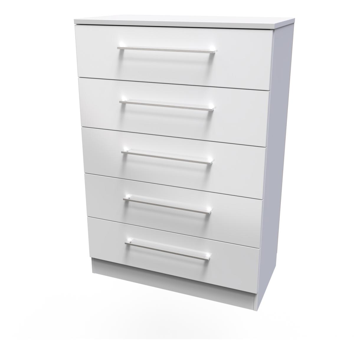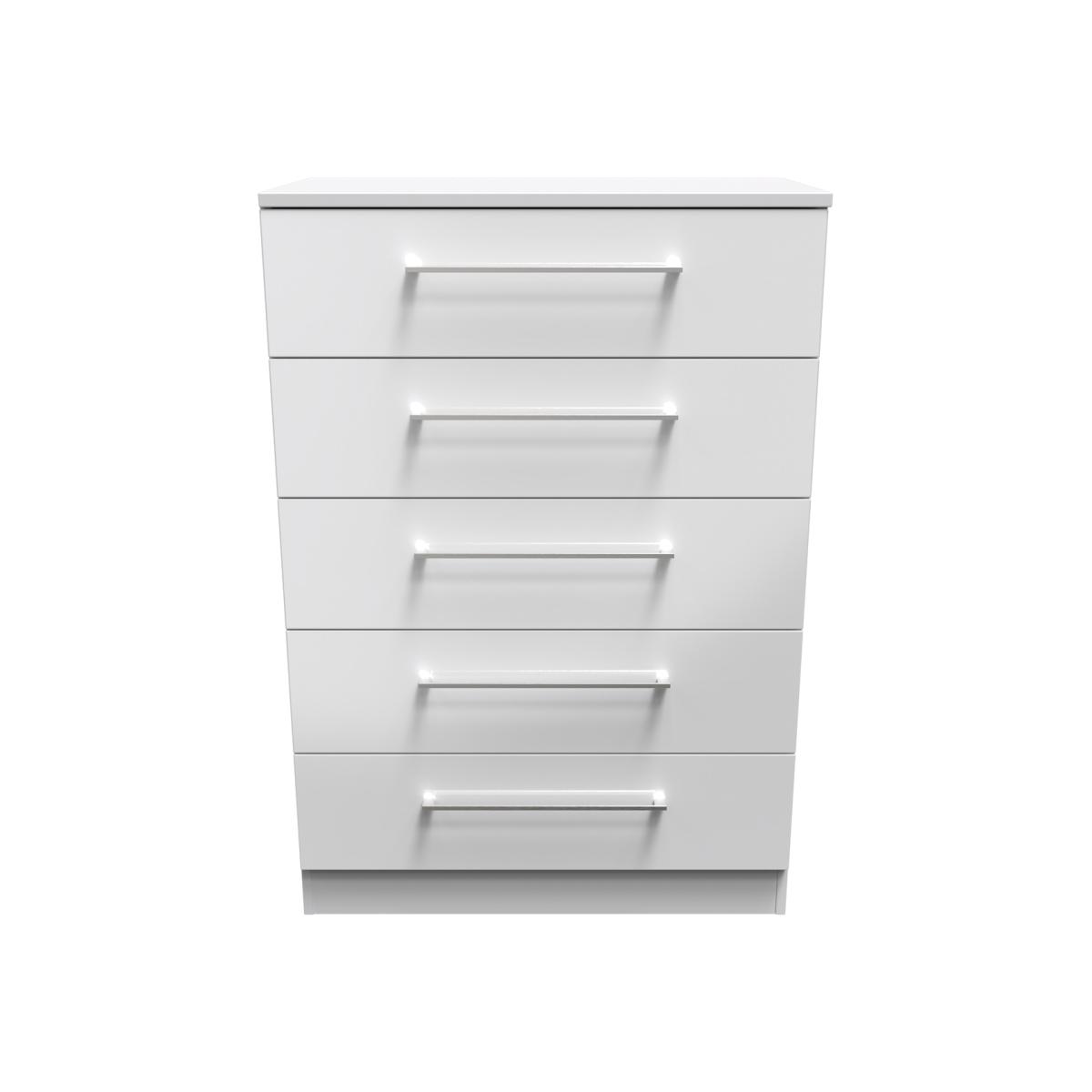 Worcester Ready Assembled 5 Drawer Chest - White Gloss & White