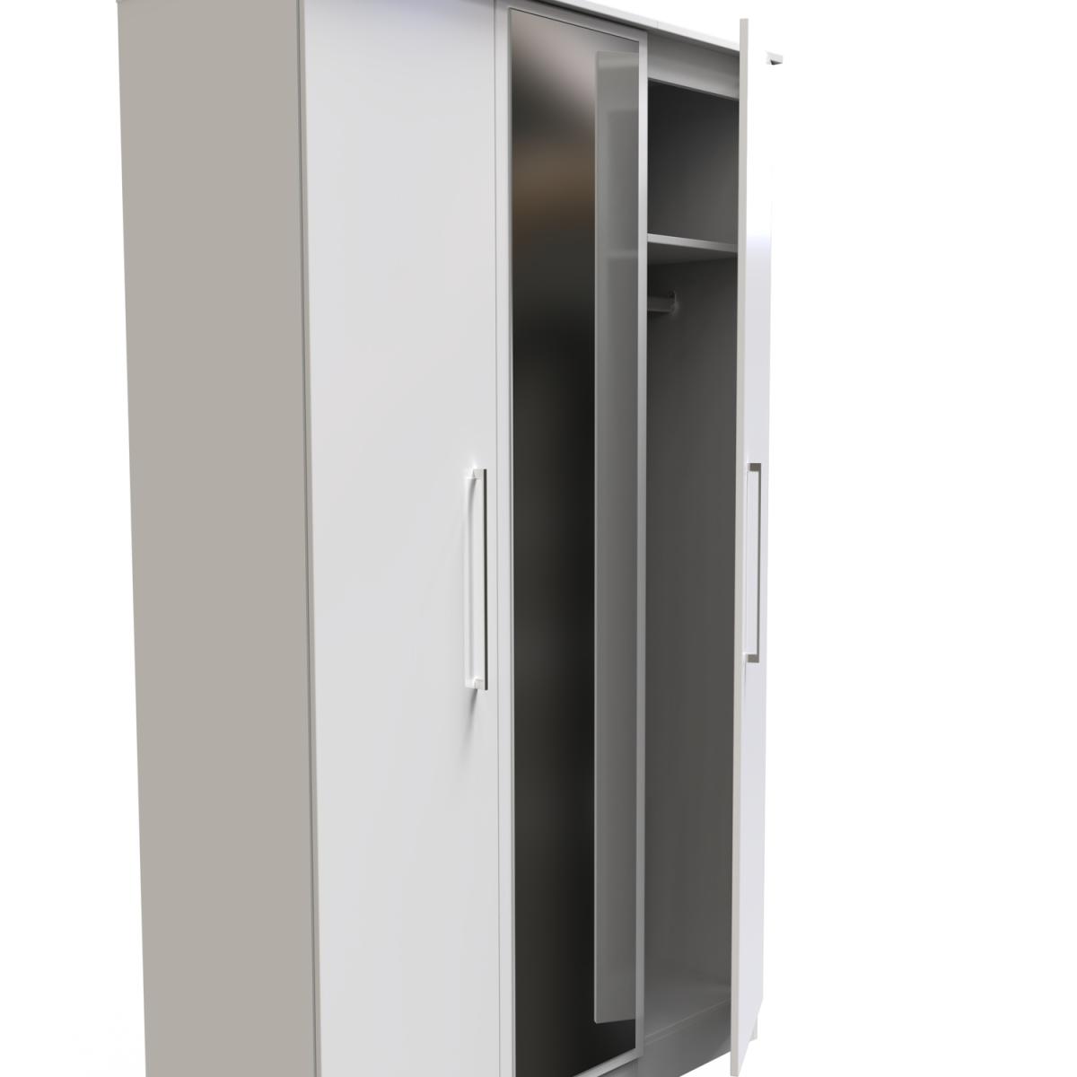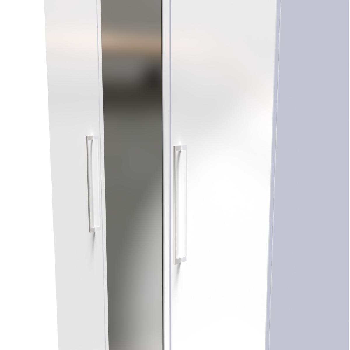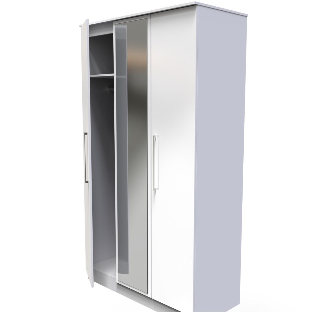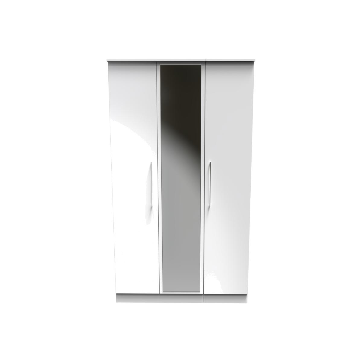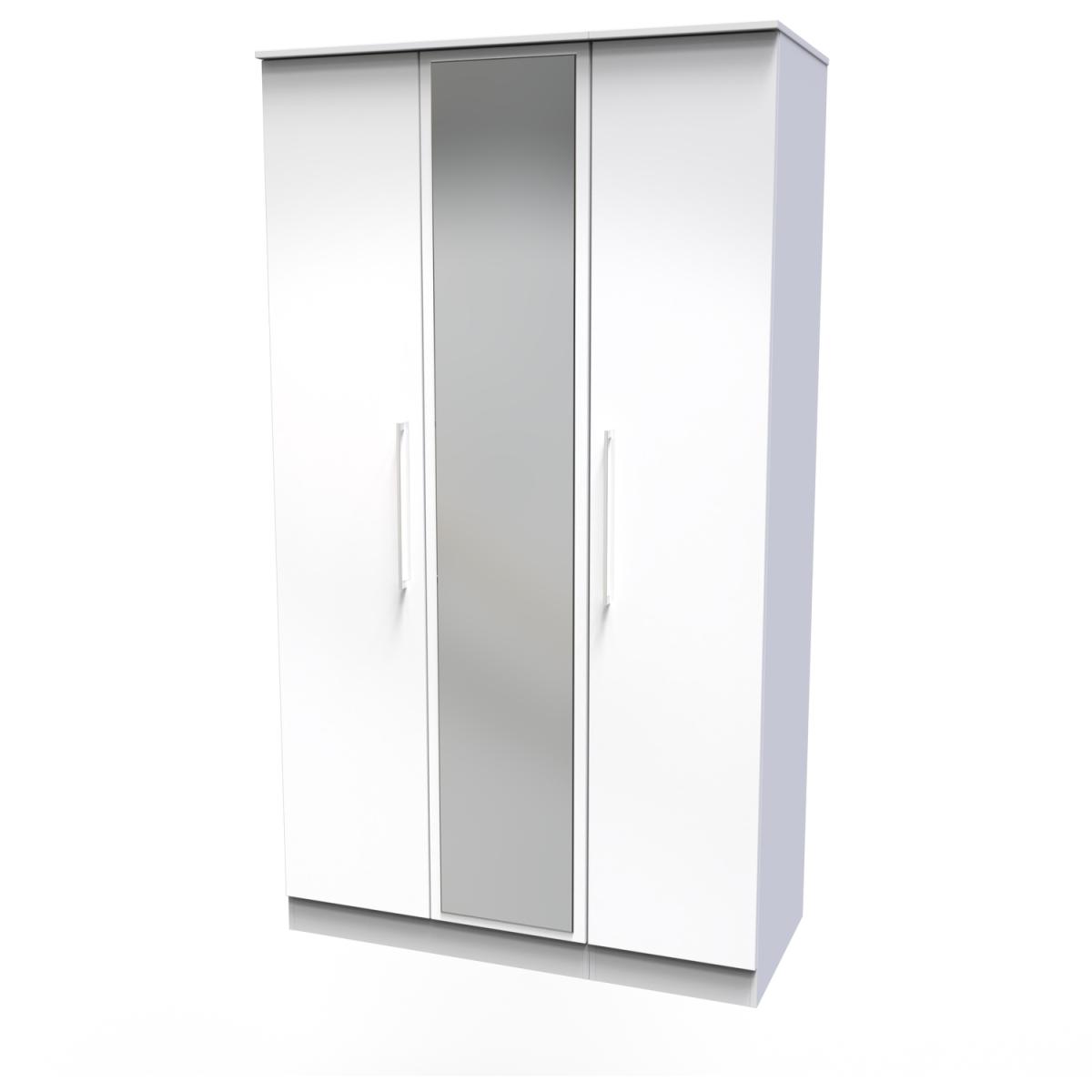 Worcester Ready Assembled Tall Triple Mirrored Wardrobe - White Gloss & White