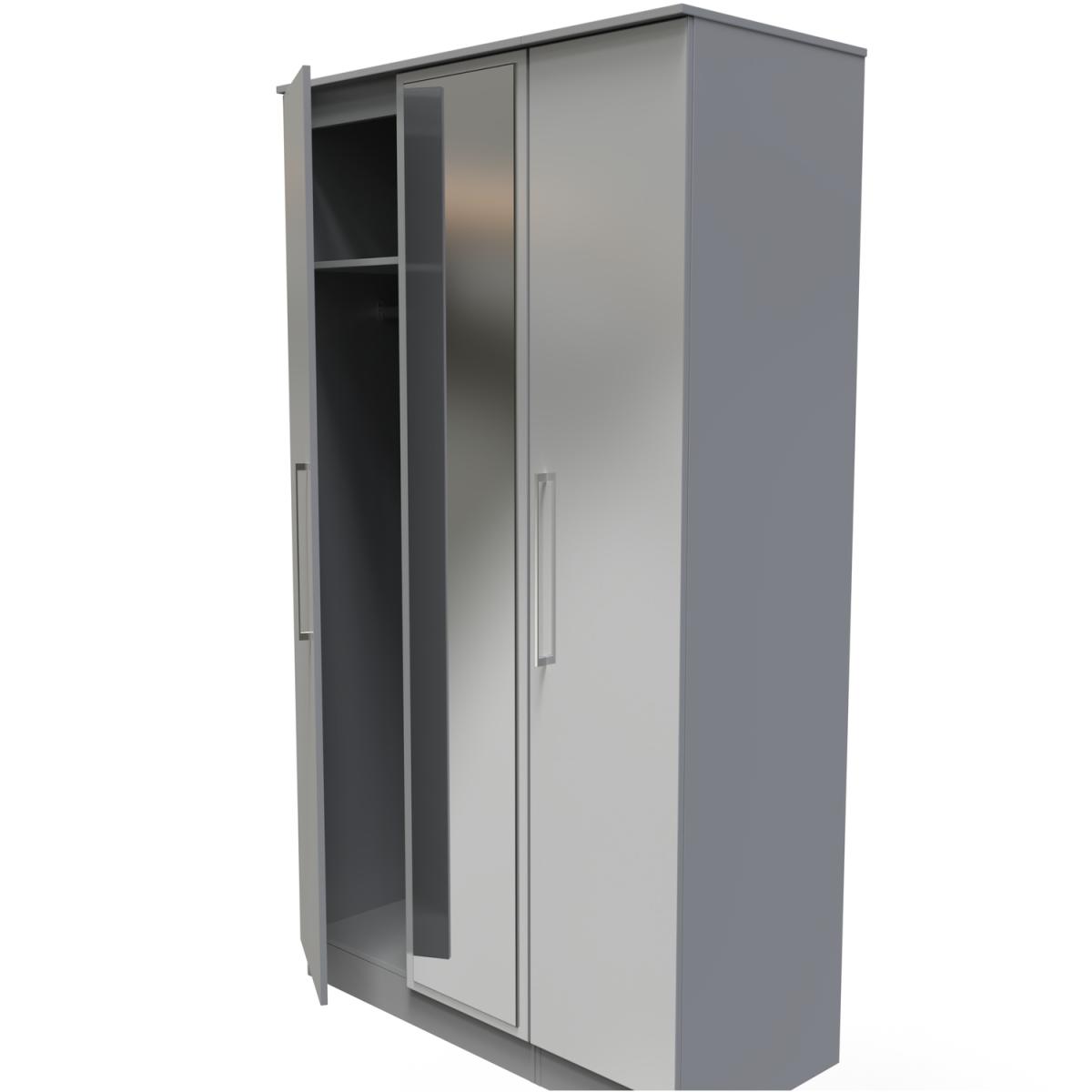 This tall triple 3 door wardrobeis perfect for any bedroom when a normal wardrobe is just not large enough. Also features a full height single mirrored door. A elegant modern range, with solid metal pull bar handles and comes in a range of scratch resistant gloss or matt finishes. All our furniture is made in the United Kingdom, to the highest quality. It is delivered direct to your location of choice by one of our two man delivery teams, and come full assembled (although legs may be removed to prevent damage in transit).