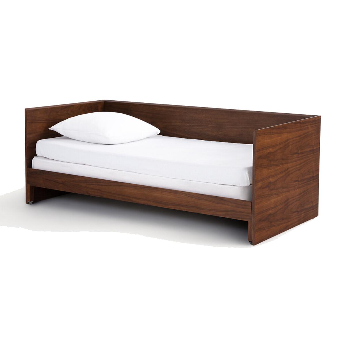Smart, practical and easy to adapt, it can be used as a cosy single bed or extended to create a comfortable double bed. Product Details • Walnut veneered MDF, FSC® certified nitrocellulose finish • Extendable slatted bed base on castors • Birch veneered MDF slats, FSC® certified nitrocellulose finish • Sleeps 2 people of similar height • Suitable for 90 x 200cm mattresses (less than 12-14cm thick), available on our website • Ready to assemble, instructions enclosedDimensions1-seater • . Width: 96.8cm • Height: 15cm • Length: 204cm • Sleeping area: 90 x 2002-seater • Width 180cm • Height: 15cm • Length: 204cm • Sleeping area: 180 x 200cmDelivery:. Assembly required. Available for home delivery. Note! Please ensure all passageways and doorways are wide enough. • WOOD FROM SUSTAINABLY MANAGED FORESTS. FSC® certified wood comes from forests that are environmentally, socially and economically well managed. Dimensions and weight of parcel2 parcels • W212 x H11 x D85cm, 40kg • W212 x H19x D106cm, 49kg