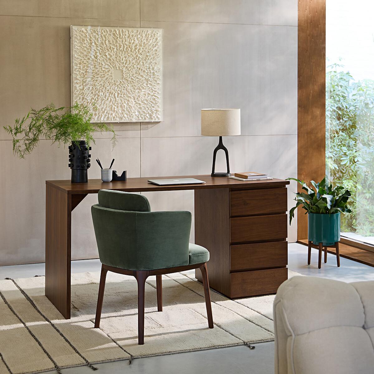 The Working desk base. Combine with the Working units and 150cm and 240cm desk tops sold on our site to create your own workspace. Product Details • Walnut veneered MDF, FSC® certified nitrocellulose finish • To be fixed to the 150cm or 240cm wide Working desk top (screws supplied) sold separately on our website. • Reversible: baskets can be fitted on the left or right. • Ready to assemble, instructions enclosedDimensions. Overall • Width: 64.5cm • Height: 74.5cm • Depth: 2.5cm/1" • Sold pre-assembled. • WOOD FROM SUSTAINABLY MANAGED FORESTS. FSC® certified wood comes from forests that are environmentally, socially and economically well managed. Dimensions and weight of parcel1 parcel • L70.5 x H9.5 x D80cm, 6.5kg