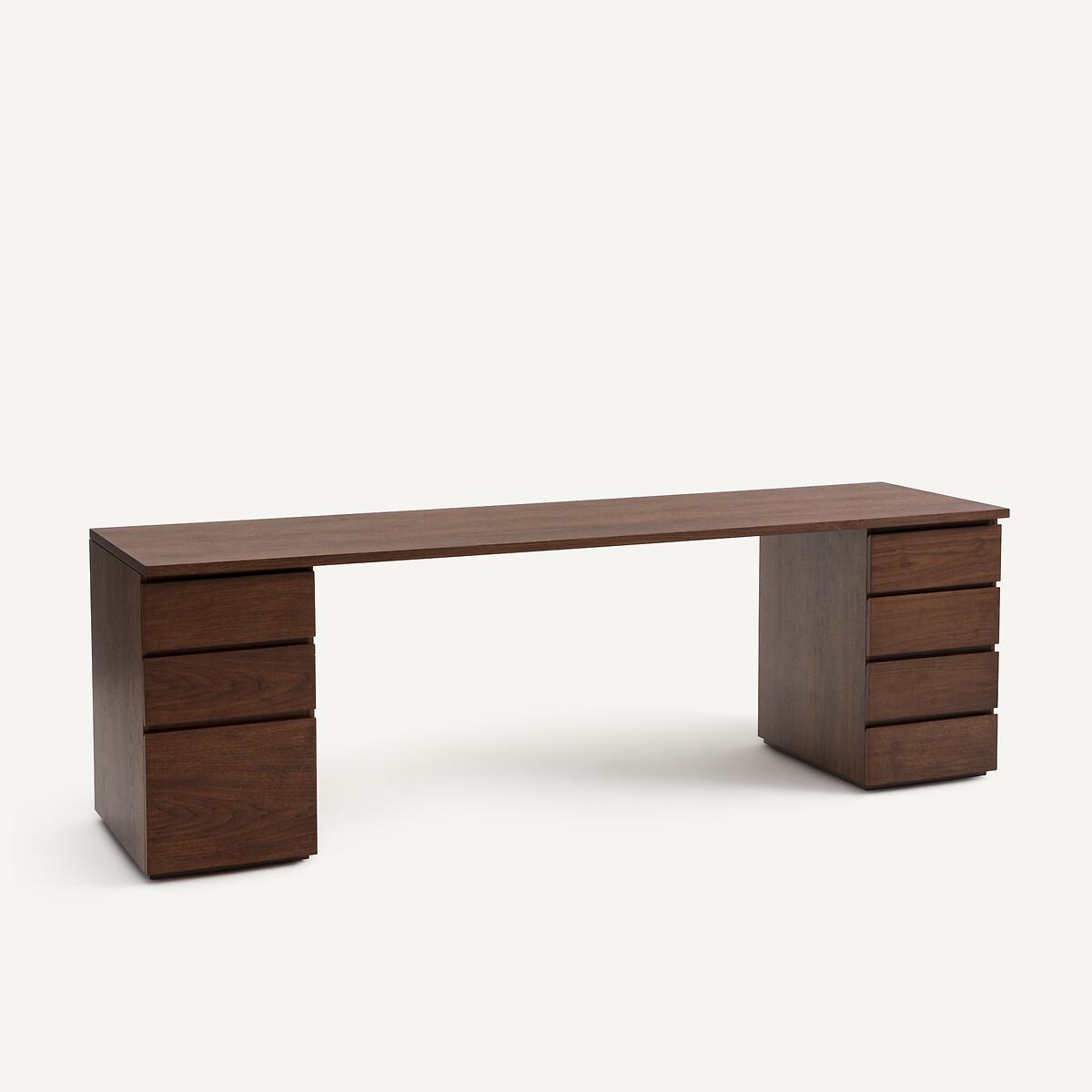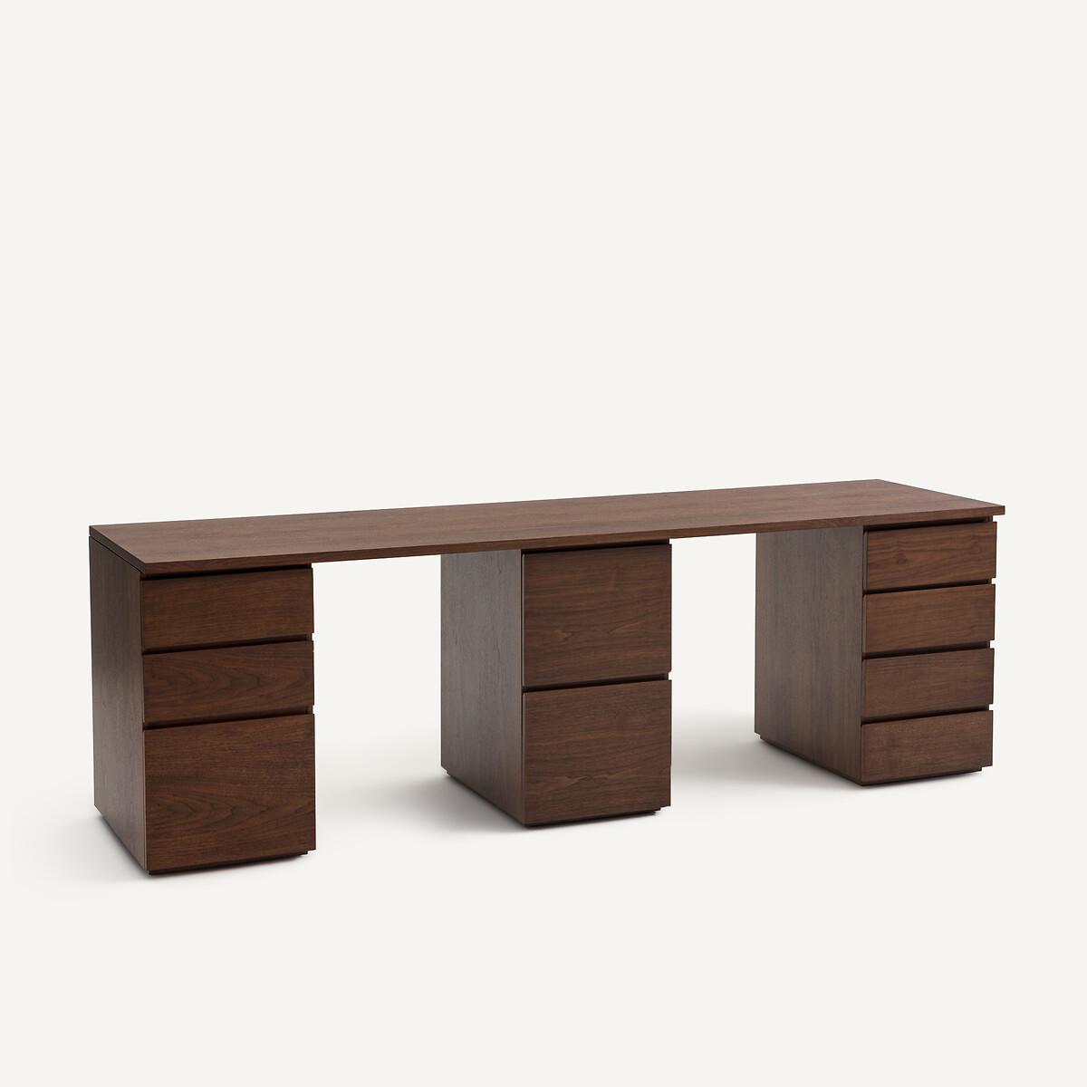 The Working desk top. Combine with the Working drawer units and base sold on our site to create your own workspace. Product Details • Walnut veneered MDF, FSC® certified nitrocellulose finish • Ready to assemble, instructions enclosedDimensions. Overall • Width: 240cm • Height: 2.5cm/1" • Depth: 65cm • Sold pre-assembled. • WOOD FROM SUSTAINABLY MANAGED FORESTS. FSC® certified wood comes from forests that are environmentally, socially and economically well managed. Parcel Dimensions1 parcel • L252 x H8 x D72cm, 33kg