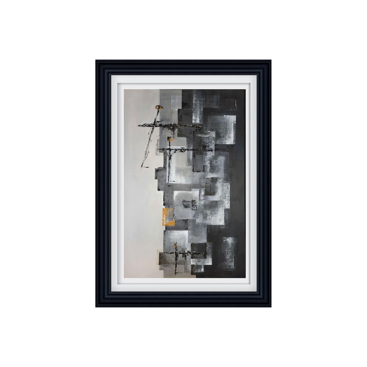 I love this piece because of its bold monochrome palette and modern abstract design, making it a versatile addition to contemporary interiors. It works particularly well in minimal, industrial, or monochromatic schemes, where it can serve as a striking focal point. Practical styling tips include pairing it with textured or matte finishes and placing it above a console or sideboard to anchor a space. Its compact size makes it ideal for smaller wall spaces or for creating visual interest in a cluttered corner. Overall, it’s a great choice to add sophisticated, artful charm without overpowering the room.