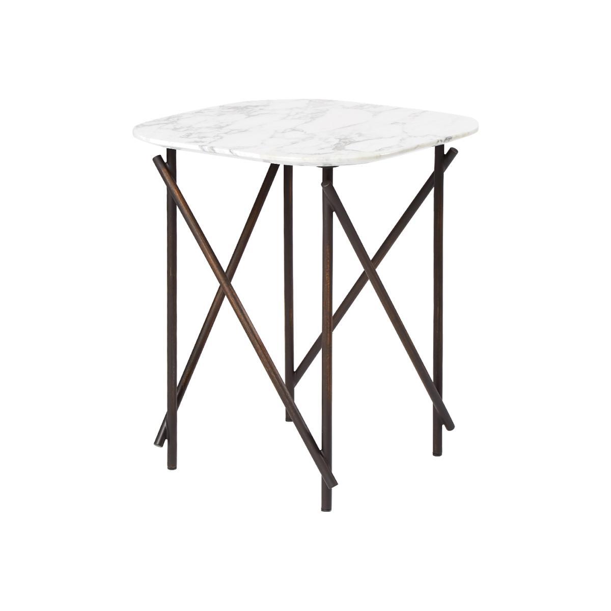Designed exclusively by Magnus Long for The Conran Shop, this Workshop lamp table is crafted in Italy using high-quality materials and makes a striking design statement. Inspired by bamboo structures from South-East Asia, the Workshop lamp table has an Arabescato marble top and burnished bronze-finished legs in a contemporary, asymmetrical structure. A unique piece, the Workshop lamp table is perfect for displaying a favourite table lighting piece, or as a side table for your living space. Its pure, yet interesting form and honest materials would subtly enhance your space, wherever you choose to place it. Available in selected colours and finishes.