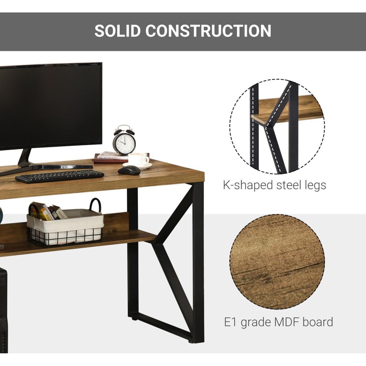 Workstation Computer Desk with Storage Shelf - Brown and black