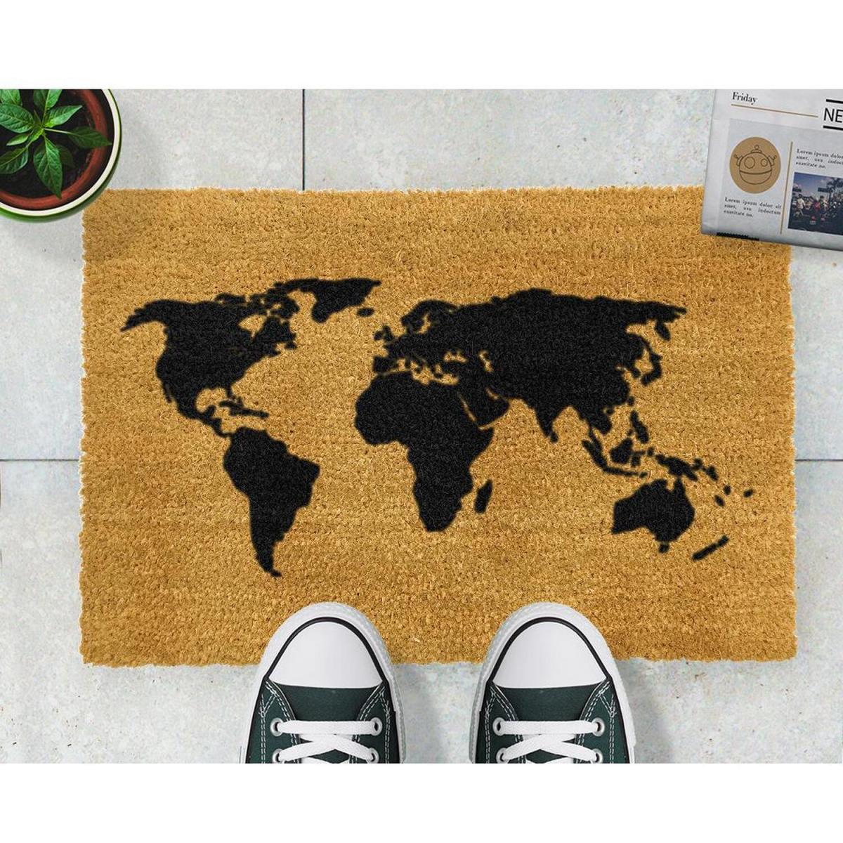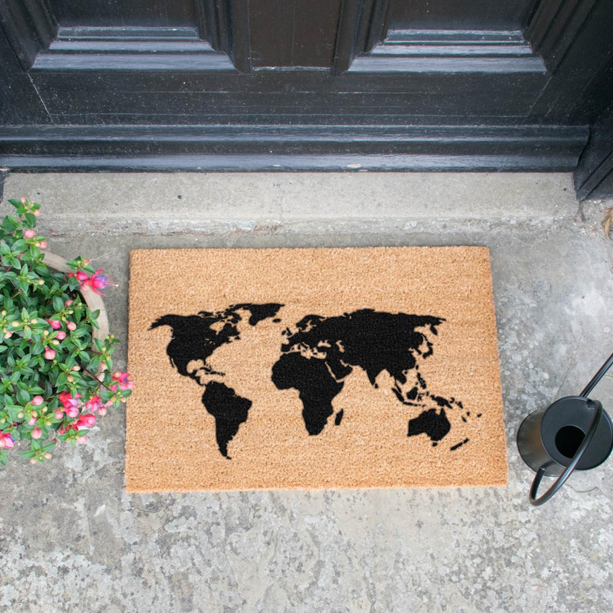 I love the world map doormat - it's both functional and a touch of global style. Its simple black and beige colour palette makes it quite versatile, working well in contemporary, minimal, or eclectic interiors. It’s particularly effective in homes with neutral or monochrome schemes, subtly adding interest without overwhelming the space. For practical styling, place it on a natural stone or wooden floor to enhance its earthy tones, and pair it with hosting accessories like wicker baskets or greenery for a warm, welcoming vibe. It’s a clever way to introduce a bit of personality and wanderlust into your entrance hall while also serving its primary purpose of keeping dirt at bay.