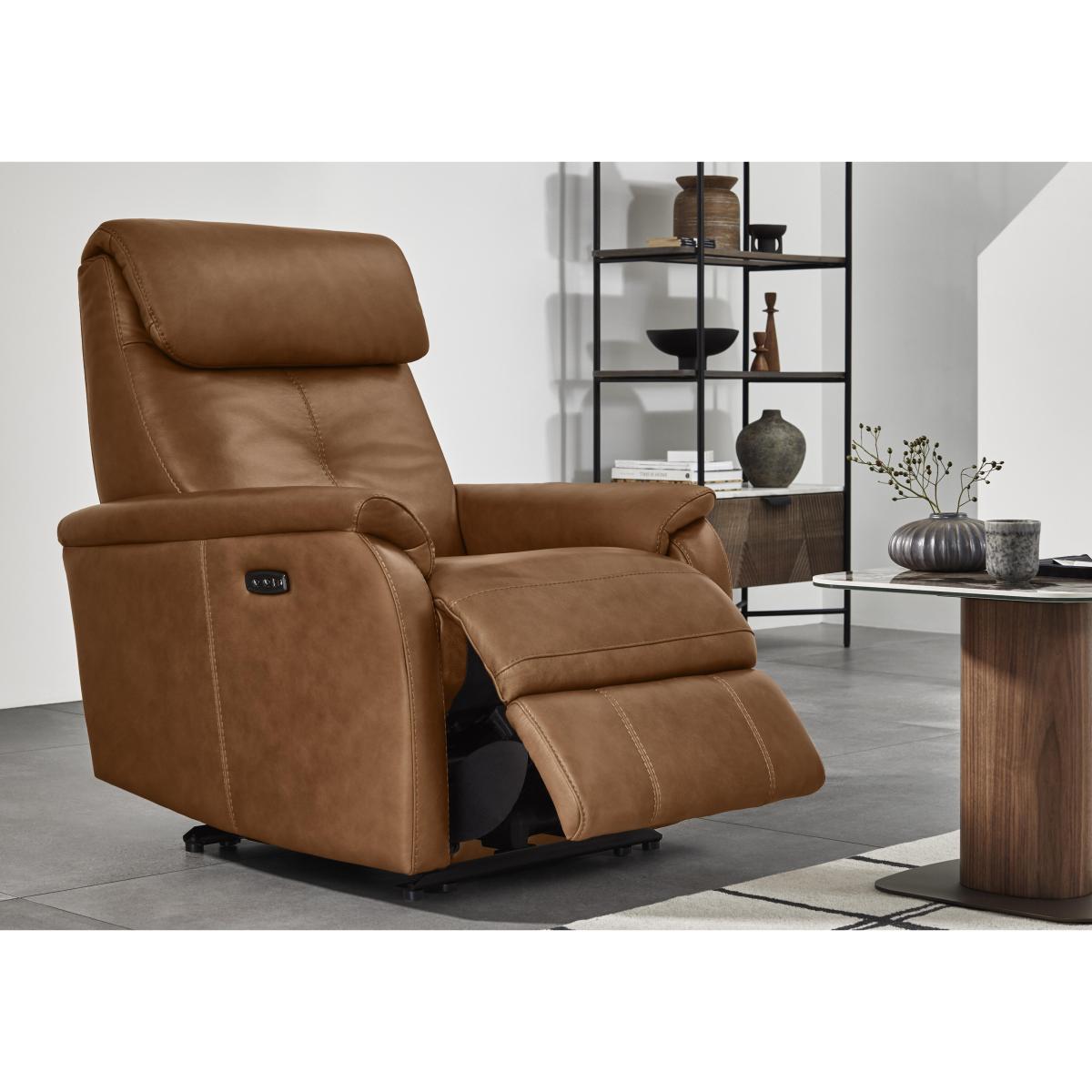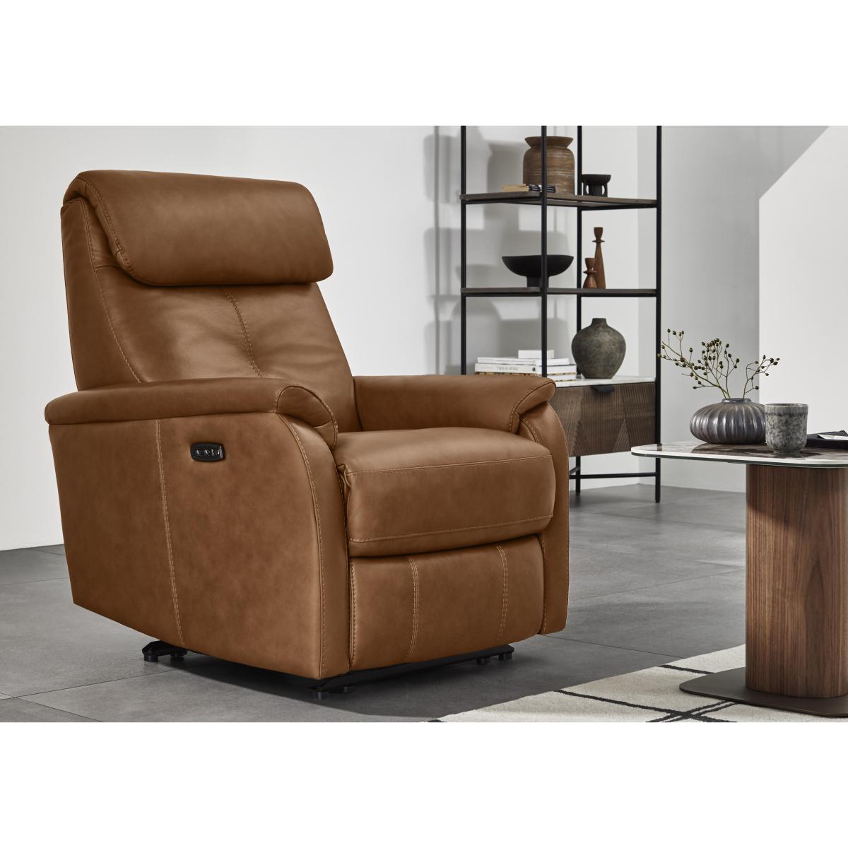 To bring large-scale sofa comfort, support and luxury to smaller living rooms – that’s the mission of our Titch range, part of our World of Leather Compact Collection. Timeless in style, these sofas and armchairs bring together an array of comfort features all neatly packed into a smaller footprint. Every sofa and chair has a sprung seat and back, high-back support with sumptuously cushioned headrests, ultra-comfy sprung seat cushions and foam- and fibre-filled back cushions, and optional power recliners with built-in USB charging. Available in 100% leather and fabric, our Compact Collection Titch range is handmade exclusively for Furniture Village. Good things come in small packages – like our compact Titch leather armchair. Timeless in style, it’s designed to bring maximum comfort to smaller living rooms. You can even add a power recliner. Why you'll love it Designed for large-scale relaxation and small-sized rooms – that’s Titch. Timeless leather chair style suits traditional and contemporary spaces. Sumptuously cushioned with an extra-comfy headrest and armrests. You can even add a power recliner to this leather armchair. Power recliner chairs come with built-in USB device charging. High-back style promises enhanced head, neck and shoulder support. Sprung seat and back ensure even distribution of body weight. Supportive sprung seat cushioning and luxurious foam back cushioning. Beautiful 100% leather upholstery in a huge choice of colours. Handcrafted exclusively for Furniture Village. This leather armchair is part of our World of Leather Compact Collection Titch range. What you need to know Medium comfort level. Seat suspension: spring. Seat cushioning: foam, fibre and inner coil. Cushioning is fixed. Back support: webbing. Back cushioning: foam and fibre. Cushioning is fixed. Arm cushioning: foam and fibre. Back is removable. Fixed seat and back cushions require smoothing and straightening regularly. To smooth and straighten fixed cushions, punch the back cushion’s top two corners and the seat cushion’s outer two corners, and pinch outwards. USB charging is only available on the power recliner version of this sofa. Please allow time for new recliners to ease. Minor gaps are necessary to ensure ease of recliner motion and may be exaggerated depending on floor type. Leather has unique marks and characteristics with variance in colour and texture. Leather softens with use. Smoothing the tops of leather cushions prevents signs of visual comfort. Please read our upholstery care guide for more advice. Item code: TITCCHP-BV-002