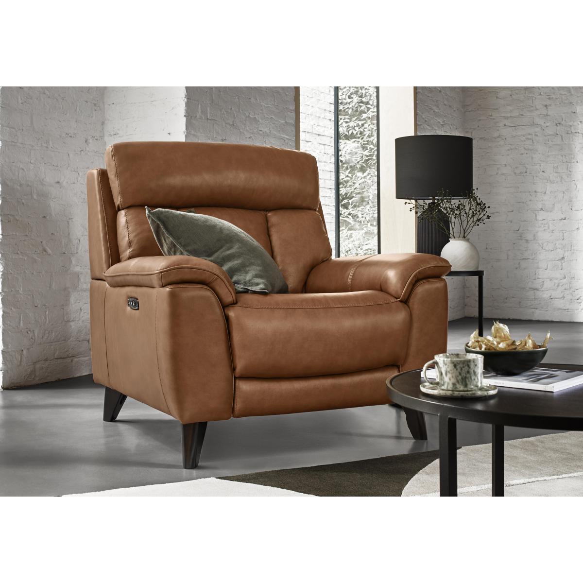 Drift away in complete comfort on the beautifully handcrafted sofa of your dreams from our Dreamer collection. With power recliners and power headrests, sprung seats and backs, sumptuous cushioning and superb support, everything’s in place for real relaxation. The generously proportioned sofas and armchairs in this range also come with built-in USB charging as standard, high-profile back, neck and shoulder support, and stylish stitching that accentuates the lumbar support. Available in an extensive choice of 100% leather and fabric upholstery options, the Dreamer range is a Furniture Village exclusive. The chair of your dreams? Our Dreamer leather armchair is simply the most relaxing place to be, thanks to its power recliner and headrest, sumptuous cushioning and wonderful high-back support. Why you’ll love it Power recliner? Power headrest? Sumptuous curves? No, you’re not dreaming. Our fabulous Dreamer leather power recliner armchair is every bit as comfortable as it looks. Cleverly curved, stitched and cushioned for an incredible body-hugging feeling. Enjoy personalised relaxation with a power recliner and power headrest. The sprung seat and back evenly distribute body weight for perfectly balanced support. Built-in USB charging. Stylish tapered wooden legs. In an extensive choice of leather upholstery styles and colours. A Furniture Village exclusive. This power recliner chair with a power headrest in 100% leather is part of our Comfort Story Dreamer range. What you need to know Medium comfort level. Seat suspension: no-sag springs. Seat cushioning: foam and inner coil. Cushioning is fixed. Back suspension: rubber webbing. Back cushioning: loose fibre. Cushioning is fixed. Please allow time for new recliners to ease. Minor gaps are necessary to ensure ease of recliner motion and may be exaggerated depending on floor type. Leather has unique marks and characteristics with variation in colour and texture. Leather softens with use. Smoothing the tops of leather cushions prevents signs of visual comfort. Please read our upholstery care guide for more advice. Item code: DREACHPHBV-002