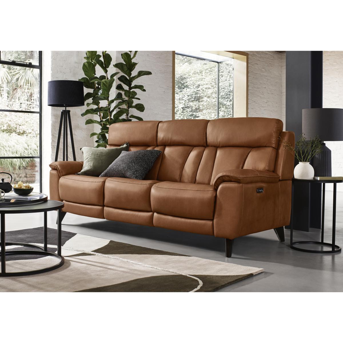 Drift away in complete comfort on the beautifully handcrafted sofa of your dreams from our Dreamer collection. With power recliners and power headrests, sprung seats and backs, sumptuous cushioning and superb support, everything’s in place for real relaxation. The generously proportioned sofas and armchairs in this range also come with built-in USB charging as standard, high-profile back, neck and shoulder support, and stylish stitching that accentuates the lumbar support. Available in an extensive choice of 100% leather and fabric upholstery options, the Dreamer range is a Furniture Village exclusive. The sofa of your dreams? Our Dreamer three-seater leather sofa is simply the most relaxing place to be, thanks to its power recliners, sumptuous cushioning and wonderful high-back support. Why you’ll love it Power recliners? Sumptuous curves? Superb support? No, you’re not dreaming. Generously proportioned Dreamer 3-seater leather power recliner sofa is as comfortable as it looks. Cleverly curved, stitched and cushioned for an incredible body-hugging feeling. Enjoy personalised relaxation with smooth power recliners. The sprung seat and back evenly distribute body weight for perfectly balanced support. Built-in USB charging. Stylish tapered wooden legs. In an extensive choice of leather upholstery styles and colours. Handcrafted. A Furniture Village exclusive. This 3-seater power recliner sofa in 100% leather is part of our Comfort Story Dreamer range. What you need to know Medium comfort level. Seat suspension: no-sag springs. Seat cushioning: foam and inner coil. Cushioning is fixed. Back suspension: rubber webbing. Back cushioning: loose fibre. Cushioning is fixed. Please allow time for new recliners to ease. Minor gaps are necessary to ensure ease of recliner motion and may be exaggerated depending on floor type. Leather has unique marks and characteristics with variation in colour and texture. Leather softens with use. Smoothing the tops of leather cushions prevents signs of visual comfort. Please read our upholstery care guide for more advice. Item code: DREA3SP-CA-002