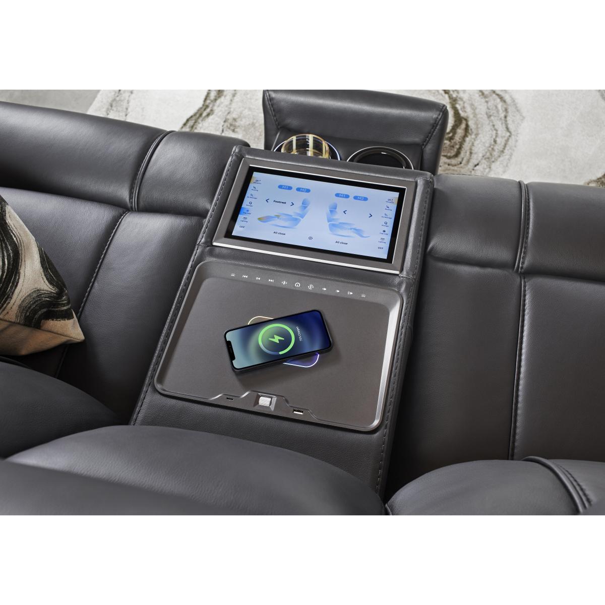 With media features in abundance and plenty of high-end details, our luxury-leaning, fashion-forward Hollywood range of sofas is ready to keep you entertained in style. A multi-functional touchscreen media console lets you control the power recliners, power headrests and your phone’s music library when it’s connected to the wireless charging pad. Built-in speakers offer a cinematic audio experience. And hidden cooling cup holders, hidden storage spaces in the arms and USB and USB-C charging all make life a little easier. With sprung seats and backs and ultra-sumptuous cushioning, Hollywood is just as appealing on the comfort front. Available in a wide choice of 100% leather and fabric upholstery options, the Hollywood range is a Furniture Village exclusive. Enjoy entertainment-ready comfort and high-end style with our Hollywood three-seater power recliner media sofa in 100% leather. With touchscreen controls, built-in speakers, wireless phone charging and storage compartments in the arms. Why you’ll love it High-end style and entertainment-ready media console? It has to be Hollywood. Enjoy the VIP treatment with this 3-seater leather power recliner media sofa. Multi-functional media console puts comfort and entertainment at your fingertips. Touch screen controls let you adjust the recliners and headrests and play music from your phone. Built-in speakers deliver a fantastic audio experience. Separate wireless phone charging pad. Power recliners and power headrests for perfect-position comfort every time. Sprung seat and back promise consistently well-balanced support. Incredibly comfortable cushioning with super-sumptuous arms and headrests. Plus, this sofa comes with plenty of well-designed extras. Sofa arms have handy pull-out storage compartments. Hidden cooling cupholders put your favourite beverages within reach. Additional recliner controls on the arms. Discrete USB and USB-C charging ports. Upholstered in 100% leather in a huge choice of colours. Built-in mood lighting at floor level helps create ambience. A Furniture Village exclusive. This 3-seater leather power recliner media sofa is part of our Hollywood range. What you need to know Medium comfort level. Seat suspension: no-sag springs. Seat cushioning: foam and loose fibre. Cushioning is fixed. Back suspension: rubber webbing. Back cushioning: foam and loose fibre. Cushioning is not reversible Arm cushioning: foam and fibre. Removable back for ease of access. Please allow time for new recliners to ease. Minor gaps are necessary to ensure ease of recliner motion and may be exaggerated depending on floor type. Leather has unique marks and characteristics with variation in colour and texture. Leather softens with use. Smoothing the tops of leather cushions prevents signs of visual comfort. Please read our upholstery care guide for more advice. Item code: HOLL3MP-NW-012