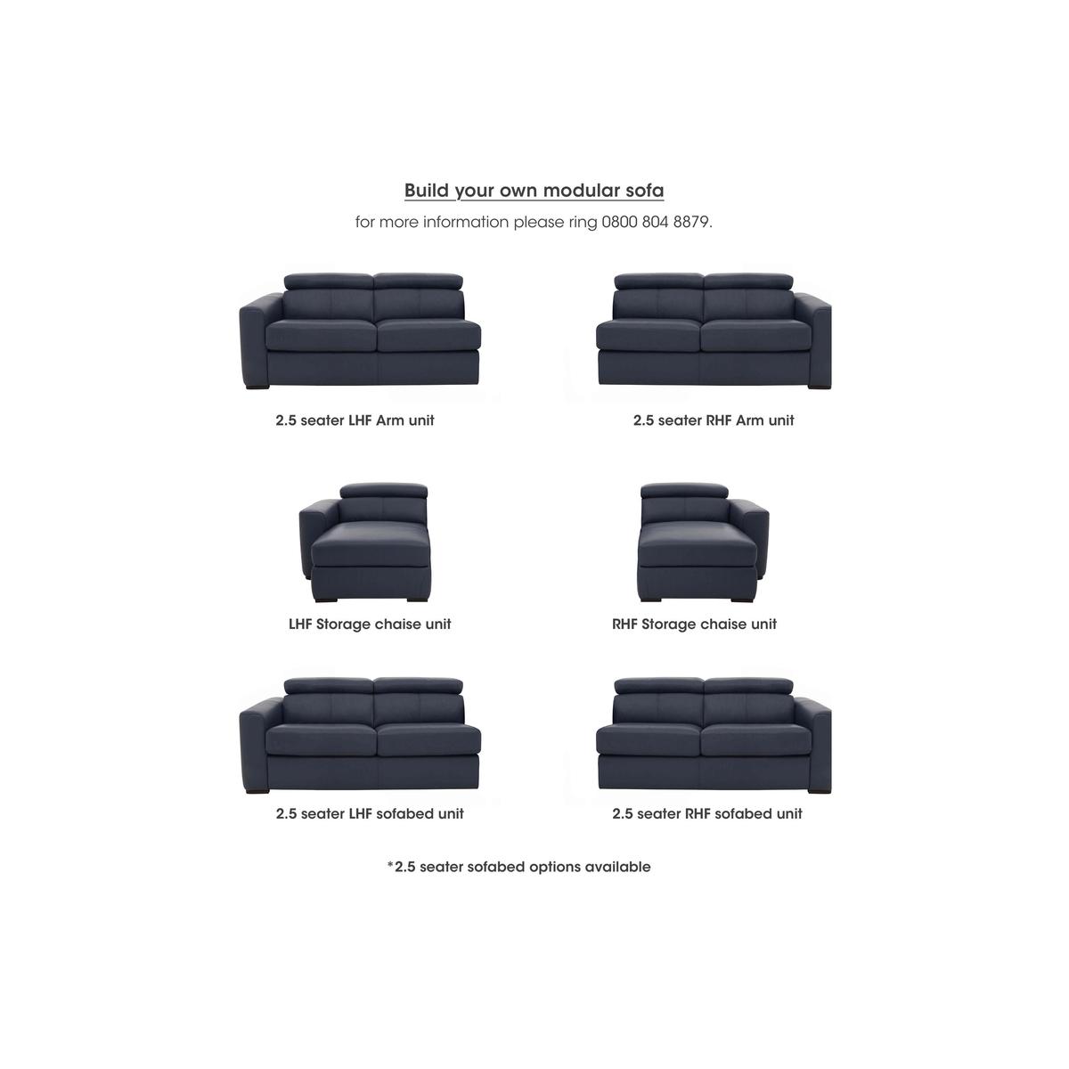 Discover modern, sleek and space-saving designs with the Infinity collection. Indulge in the comfort of pocket sprung seats and supportive manual headrests that are both wonderfully cushioned and decidedly contemporary. With smooth, clean lines and modern boxy arms, this stylish collection looks as good as it feels. Plus, these stylish designs meet the demands of modern life, with armchair sofa beds and chaise sofas with storage offering space-saving solutions for the contemporary home – particularly those short on space. Available in a wonderful selection of fabric and leather grades and beautiful colours to suit every décor. Part of a modular collection, you can mix and match different pieces from this versatile range to create your very own bespoke seating group. Exclusive to Furniture Village. Upholstered in a soft, 100% leather, the Infinity leather corner chaise sofa is the perfect space to stretch out and relax. Underneath the roomy chaise is a spacious storage compartment, ideal for storing throws, cushions and plenty more. Why you'll love it. Stylish and comfy leather corner chaise sofa with storage. Pocket sprung seats for comfortable seating. Space saving design upholstered in a high-quality 100% leather. Clean lines and boxy arms that complement modern interiors. Comes in a variety of colours in different leather grades with various levels of softness and durability. Manual headrests to lean back in total comfort. Spacious storage compartment. Also available in a choice of super-soft fabrics to suit any interior and lifestyle. This modern leather corner chair sofa with storage is part of the Infinity range. Made exclusively for Furniture Village. What you need to know. Part of a modular range, you can mix and match with different pieces for a bespoke sofa. Leather has unique marks and characteristics with variance in colour and texture, and softens with use. Smoothing the cushioned top prevents ‘puddling’.