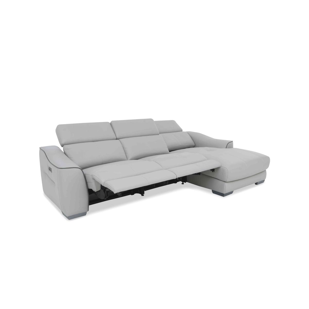 The World of Leather Xavier collection of sofas and armchairs looks and feels fabulous. Perfect position technology, power recliners, sprung seats and superb cushioning make it incredibly easy to get comfortable and stay comfortable, and the power headrests let you move effortlessly between low-profile sofa style and high-back support. The range’s contemporary curves and elegant lines ensure that whatever you choose will be a very on-trend addition to your living space. The collection is upholstered in soft 100% leather in a choice of colours, and is also available in fabric upholstery. The World of Leather Xavier range is exclusive to Furniture Village. stock code: 8880I66560. 5 Please note: this clearance item has limited stock and is subject to availability. Recline, sit, stretch and sprawl – this fabulous chaise end sofa with double power recliners and three power headrests makes it easy. And with 100% leather upholstery, you can do it all in style. Why you’ll love it Contemporary style meets high-tech comfort. Made for relaxing with perfect position technology and USB device charging. 2 power recliners and 3 power headrests mean customisable comfort for all. The power headrests also let you switch between low-profile style and high-back support. Beautiful 100% leather upholstery. Only at Furniture Village. This leather double power recliner chaise end sofa is part of our Xavier range. What you need to know Medium comfort level. Seat suspension: pocket sprung. Seat cushioning: foam topped with fibre. Back cushioning: foam topped with fibre. Please allow time for new recliners to ease. Minor gaps are necessary to ensure ease of recliner motion and may be exaggerated depending on floor type. Leather has unique marks and characteristics with variation in colour and texture. Leather softens with use. Smoothing the tops of leather cushions prevents signs of visual comfort. Please read our upholstery care guide for more advice. Item code: WEBGXAV2CLPTNC-015-1