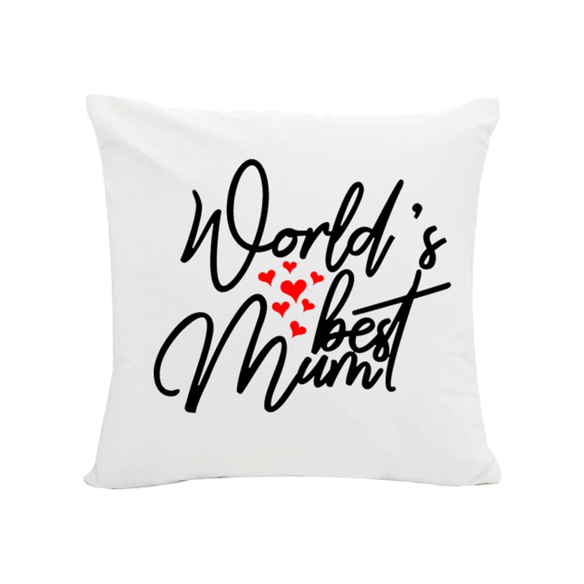 Add a touch of humour and comfort to your living space with this charming decorative cushion. The pristine white cushion features a bold, artistic typography design with the lovely message 'Worlds Best Mum', making it a relatable and amusing accent piece. Crafted with a soft, cosy material, this cushion measures approximately 40 cm x 40 cm, offering both style and comfort. The black text stands out beautifully against the crisp white background, creating a modern, minimalist aesthetic that complements any home decor. Perfect as a thoughtful gift for mothers, this cushion serves as both a decorative element and a comfortable support for sofas, beds, or reading nooks. The lightweight design and durable construction ensure long-lasting use, while the removable cover allows for easy maintenance and washing. Whether it's for Mother's Day or any special occasion, this cushion brings a smile while providing a cosy spot to rest.