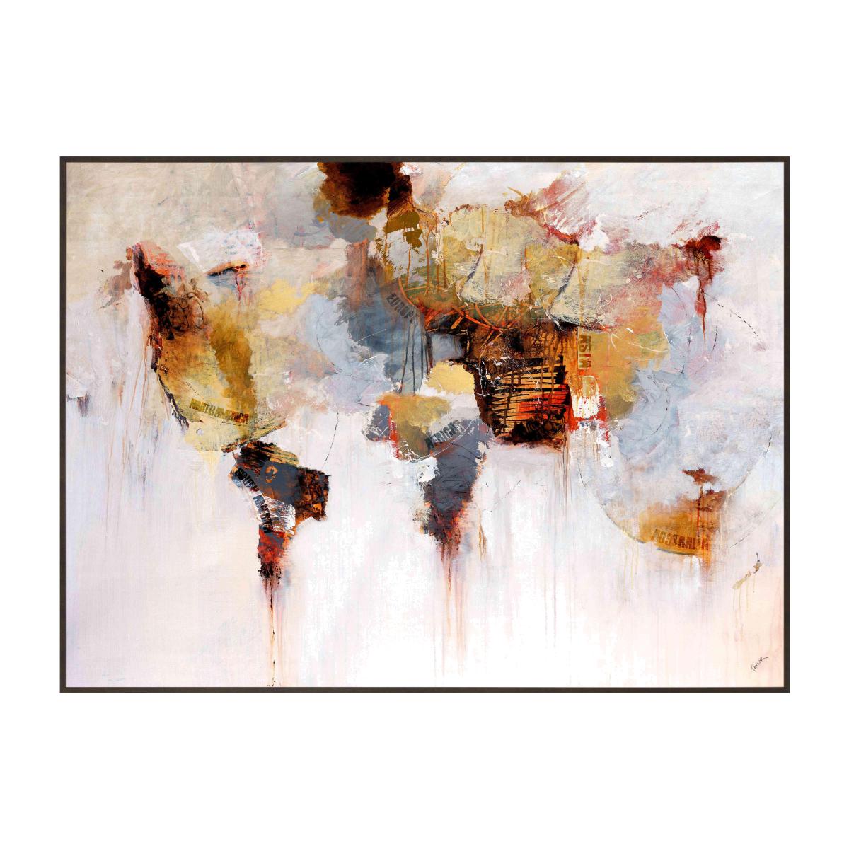 In this framed canvas, a deceptively simple layering technique in a vibrant colour palette creates an abstract but instantly recognisable map of the world. Why you'll love it Beautiful framed canvas is ideal for a feature wall in any room. An arresting abstract interpretation of a world map. Gorgeous vibrant colour palette. By artist Kari Taylor. Elegant slender frame. Online only. This framed canvas is part of the Furniture Village wall art collection. What you need to know Supplied with hanging fittings. Please follow the accompanying instructions. For indoor use only. Wipe clean with a dry cloth. Do not use detergents or cleaning products. Dimensions Height: 110 cm (43 in). Width: 150 cm (59 in).