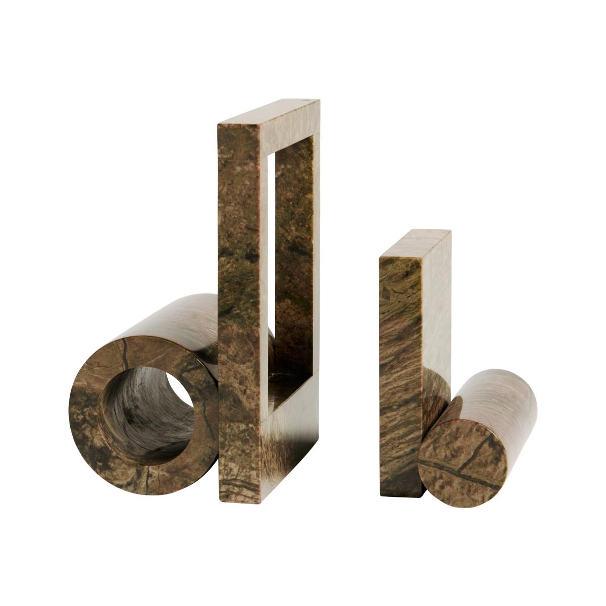 I’m a fan of these marble bookends for their clean lines and substantial feel - they anchor a shelf and double as a sculptural detail without fuss. They sit naturally in minimalist, Scandi-inspired or industrial schemes, especially when paired with oak or black steel shelving. For styling, group books by height on either side, slot in a small brass object or ceramic pot between them for contrast, and leave a little negative space so the stone grain can do the talking.