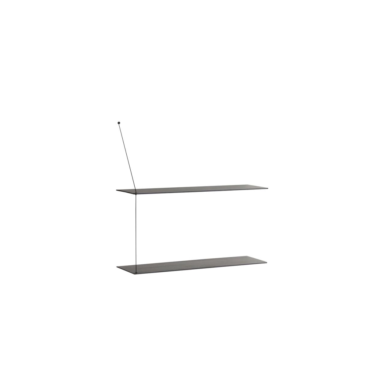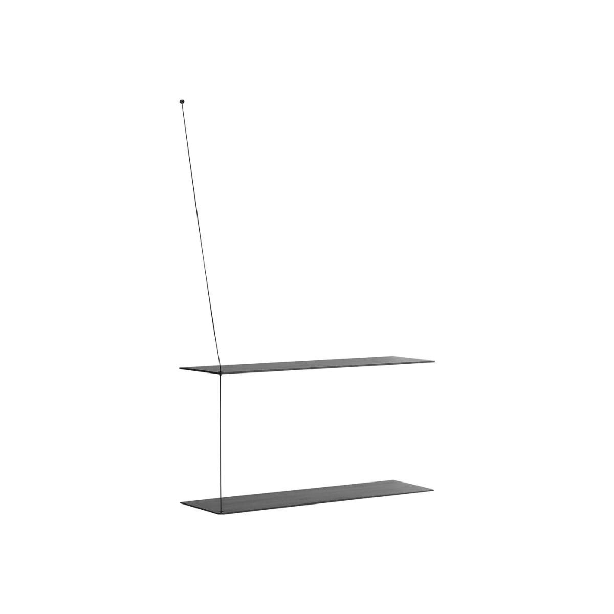 The Stedge wall shelf from Woud has a stylish Scandinavian aesthetic that effortlessly radiates simplicity and style. Created by Leonard Aldenhoff, the Sted was designed to evoke the illusion of an elegantly floating shelf. The unit consists of two shelves that have been delicately threaded on a thin metal wire. It appears as if the shelves are held up almost to the point of floating by the wire, but it is actually wall-mounted bolts underneath that provide support. The shelves are slightly thicker in the middle to allow for this elegant and subtle construction. A highly unique shelf that is sure to draw eyes from guests and family alike!.