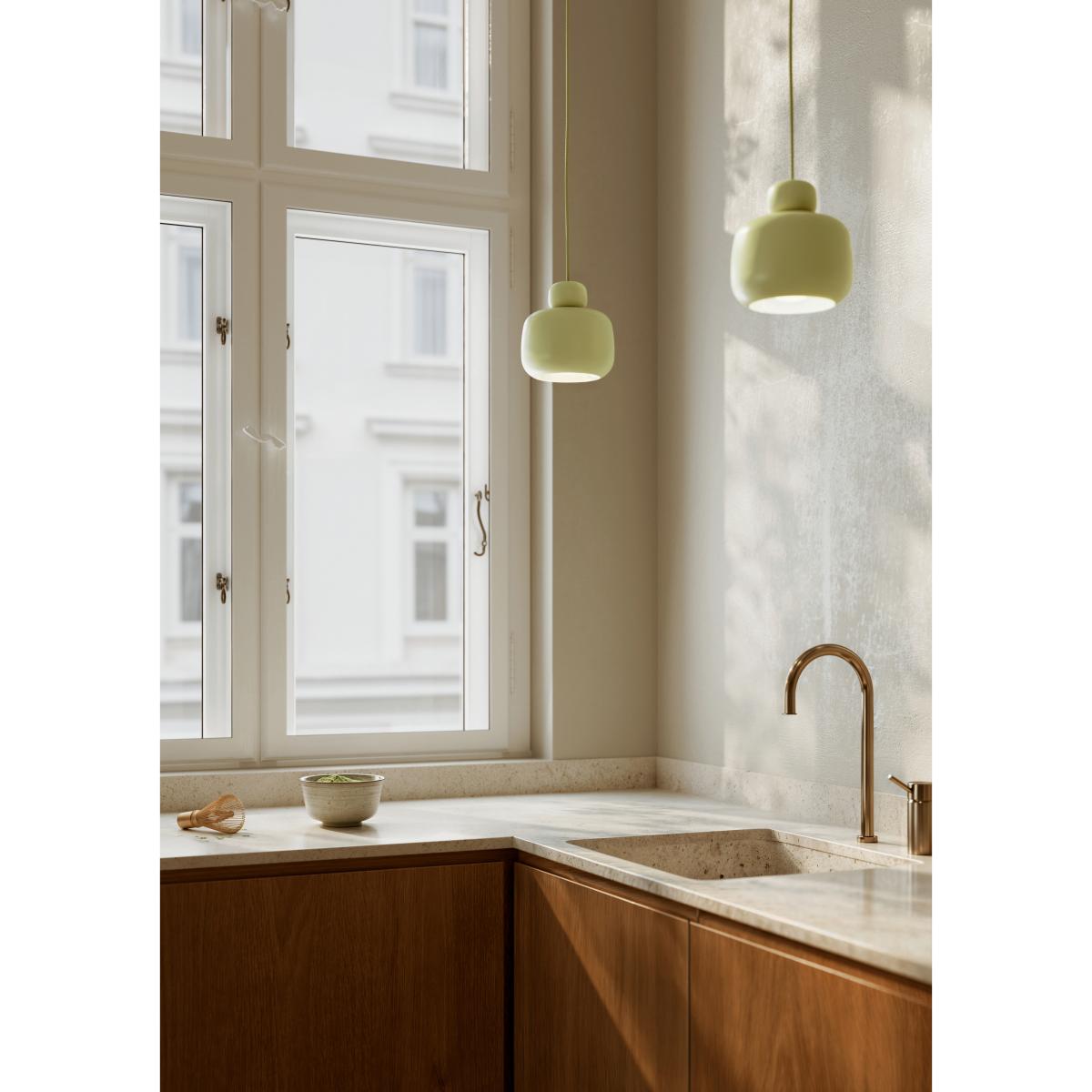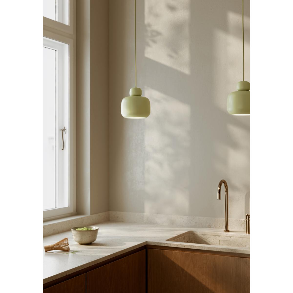 I love this small matcha green ceiling lamp for its clean, contemporary design that adds a subtle splash of colour without overwhelming a space. Its compact size makes it versatile, perfect for smaller rooms like kitchens, cosy living areas, or even as an accent in a bedroom. It works particularly well in Scandi-inspired interiors, where natural tones and minimalism are key, but also brings a playful touch to modern, eclectic spaces. Practical styling tips include pairing it with neutral or wooden furnishings to highlight its colour, or layering with other pendant lights at different heights for visual interest. It’s a simple way to add personality and warmth to your ceiling decor.