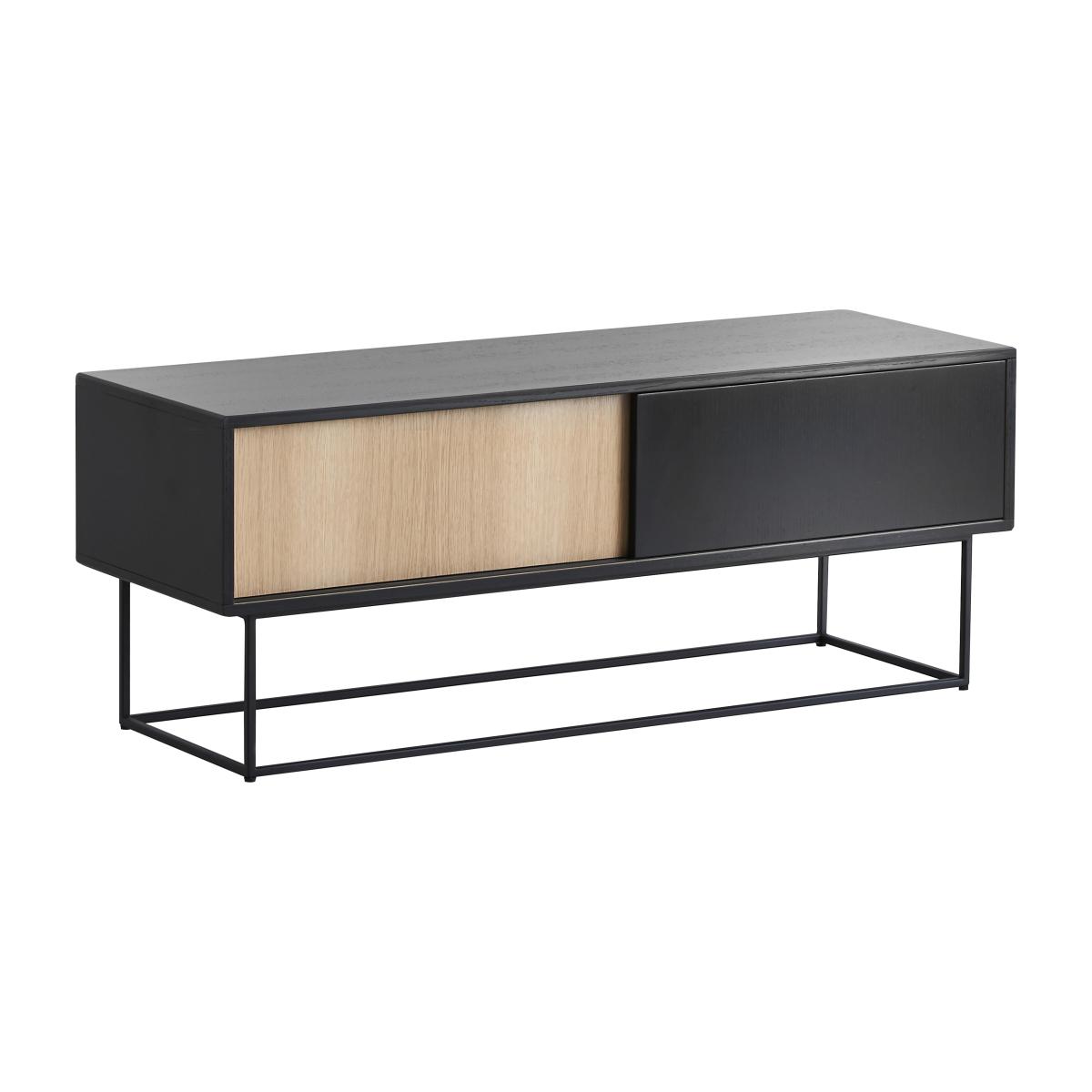 I’m a fan of the Virka bench for its clean lines and the way the black steel frame and oak doors sit together - perfect for Scandi, modern or industrial-leaning schemes. The raised base gives a light, floating feel so it works well in smaller rooms, and the sliding panels are ideal for stashing games, remotes or small AV kit. To style, keep the top simple - perhaps a low planter, a stack of books and a slim table lamp - and run cables through a discreet grommet or cable-tie channel at the back to maintain that uncluttered look.