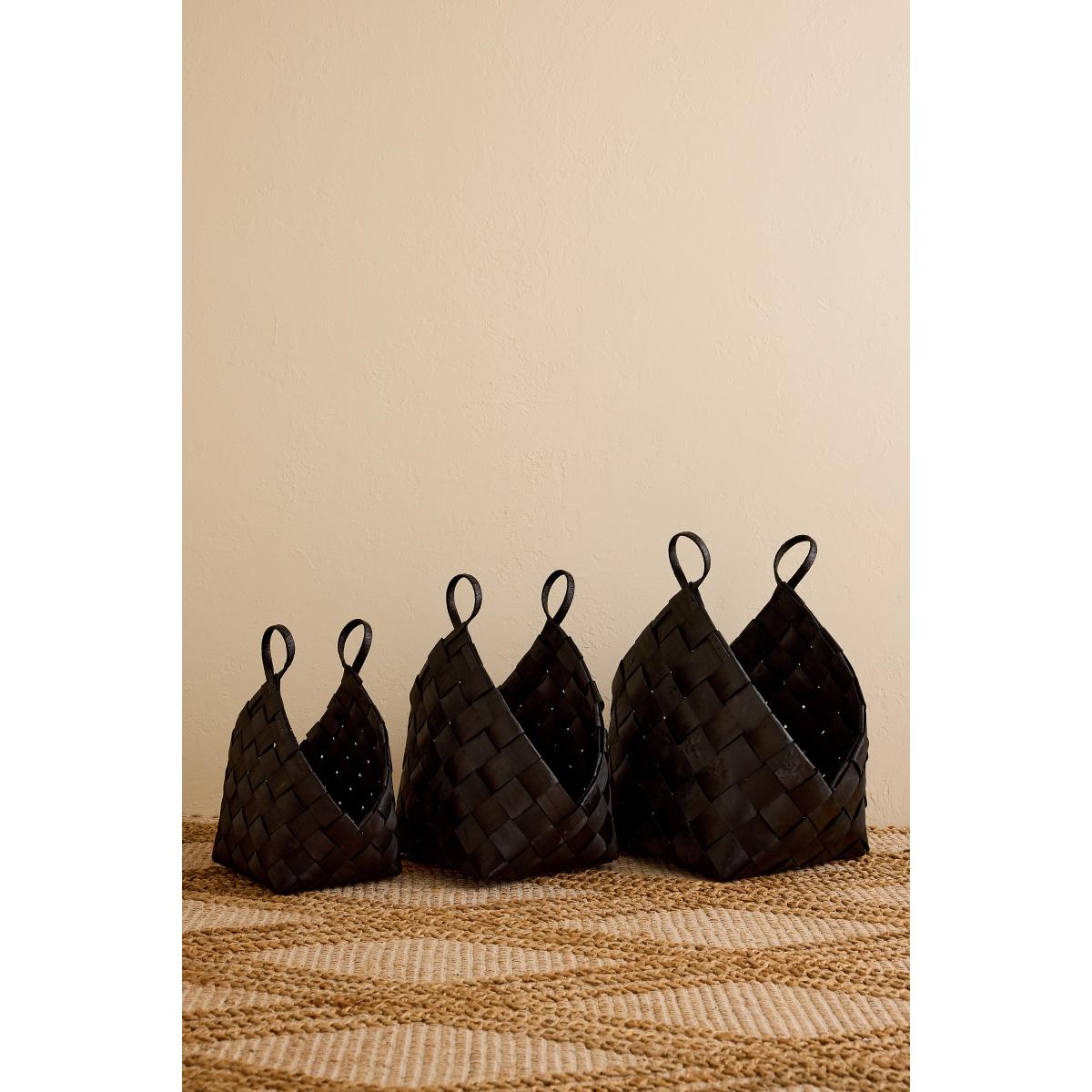 * Set of three baskets * 100% Taxodium Wood (Taxodium Taxodiaceae) * Wipe clean with dry cloth * Imported