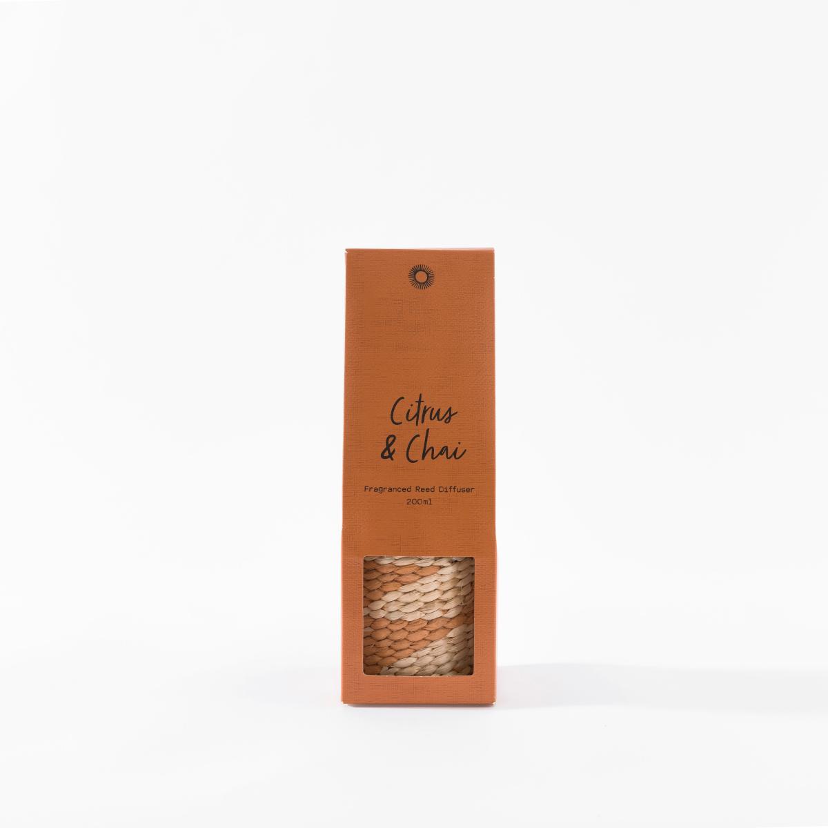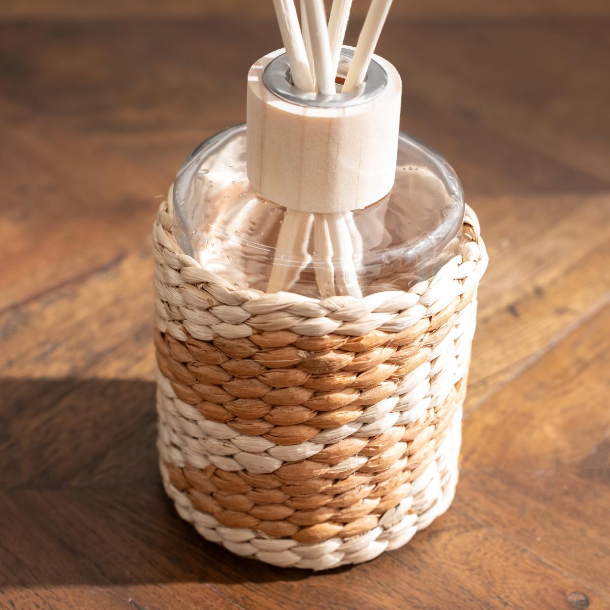 * Striking woven design * Fresh, citrus scent * Lasts up to 20 weeks * Natural reeds * Refill available separately This striking diffuser vessel is encased in a decorative natural woven design, complemented by natural wooden reeds for a stylish, textured look. The woven colours add a touch of interest to any room, while the fruity fragrance, with notes of citrus, mango, lemon, bergamot, lime, and a hint of chai, creates a refreshing and energising atmosphere. The glass vessel, complete with a wooden collar, is designed to deliver fragrance that lasts up to 20 weeks. It comes with natural reeds to enhance the scent throw - a perfect addition to your home for both visual appeal and a delightful fragrance experience.