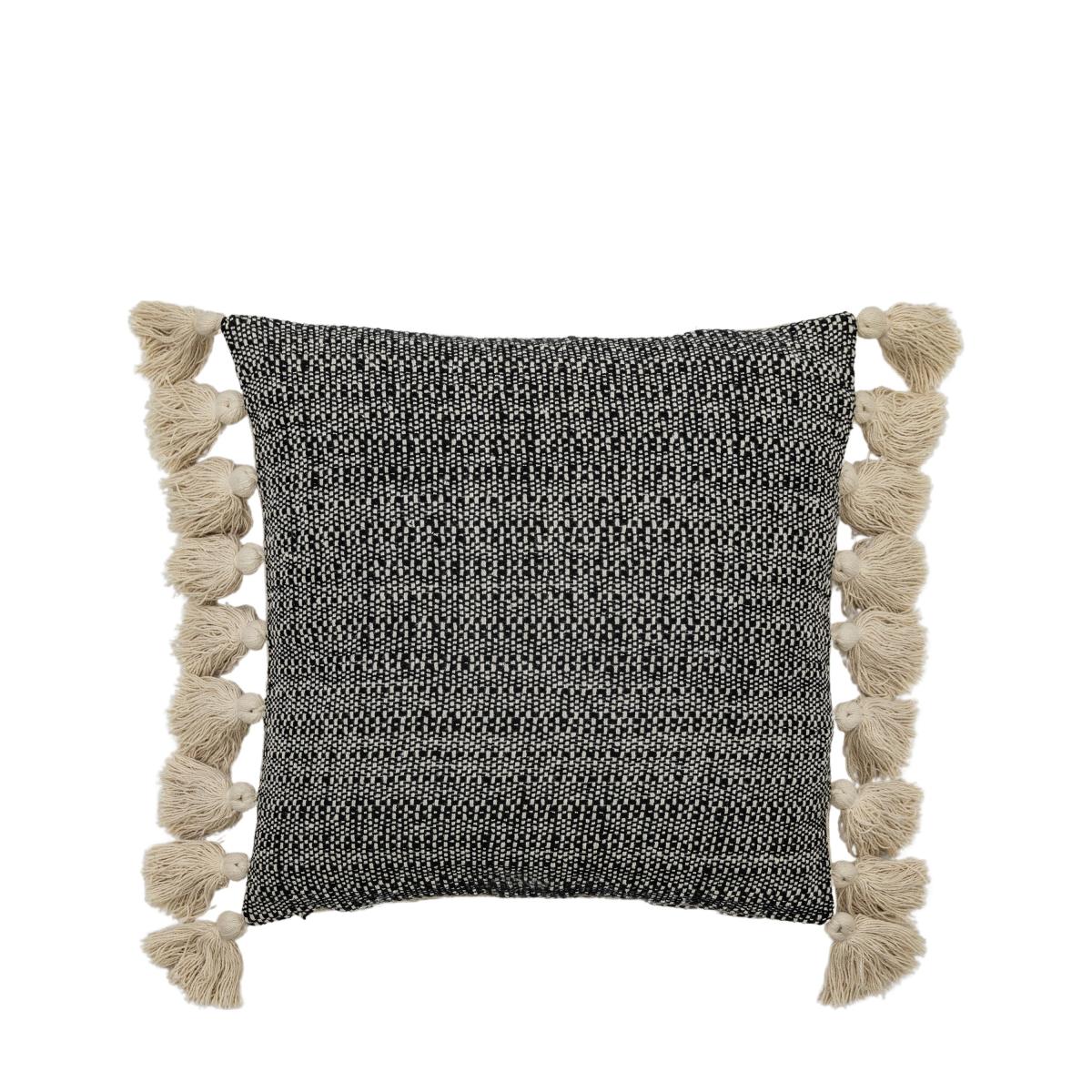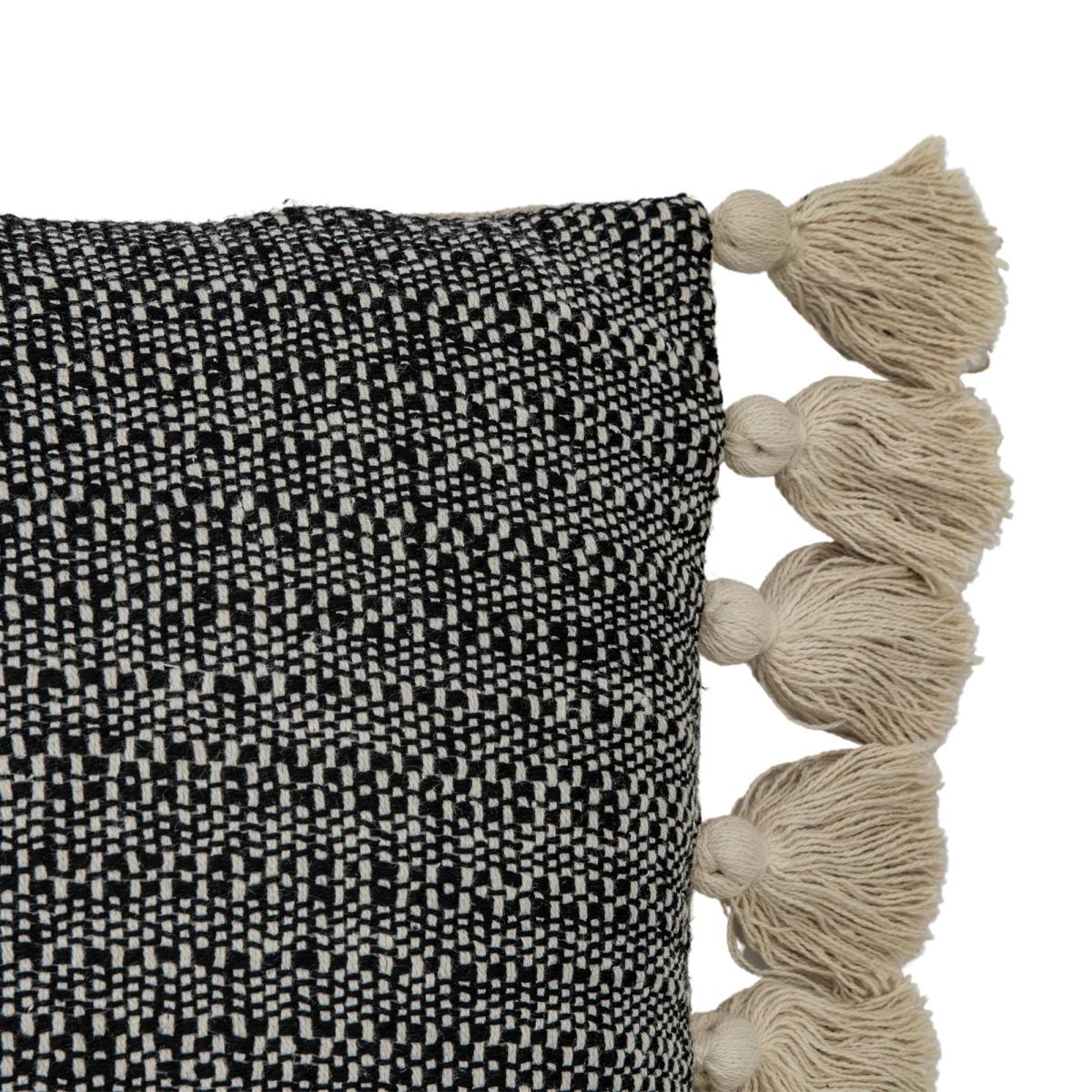 Woven Cushion with Tassels - Black
