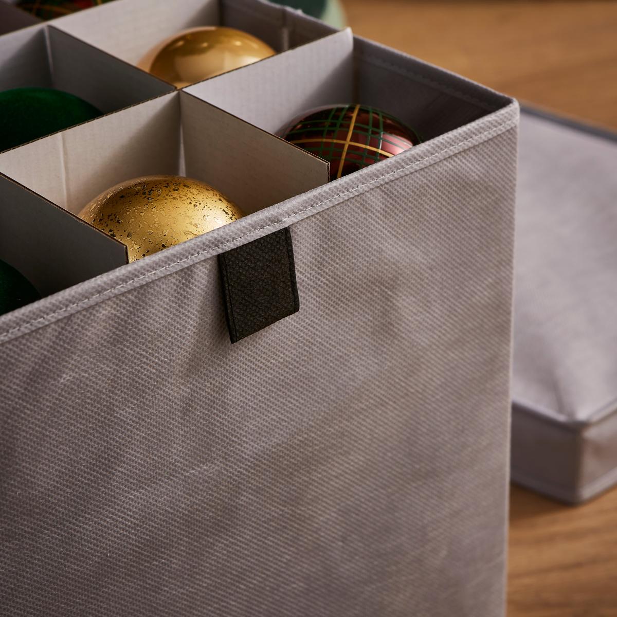 I love the woven grey bauble box because it adds a subtle texture and neutral tone that complements a variety of interiors, from Scandinavian minimalism to cosy traditional spaces. Its understated colour and woven design make it versatile for storing everything from seasonal decorations to small accessories without overwhelming the decor. Practical styling tips include grouping it with other storage baskets for a cohesive look or using it as a standalone piece in a corner to keep things organised. It’s perfect for holiday displays or everyday organisation, effortlessly blending function with understated style.