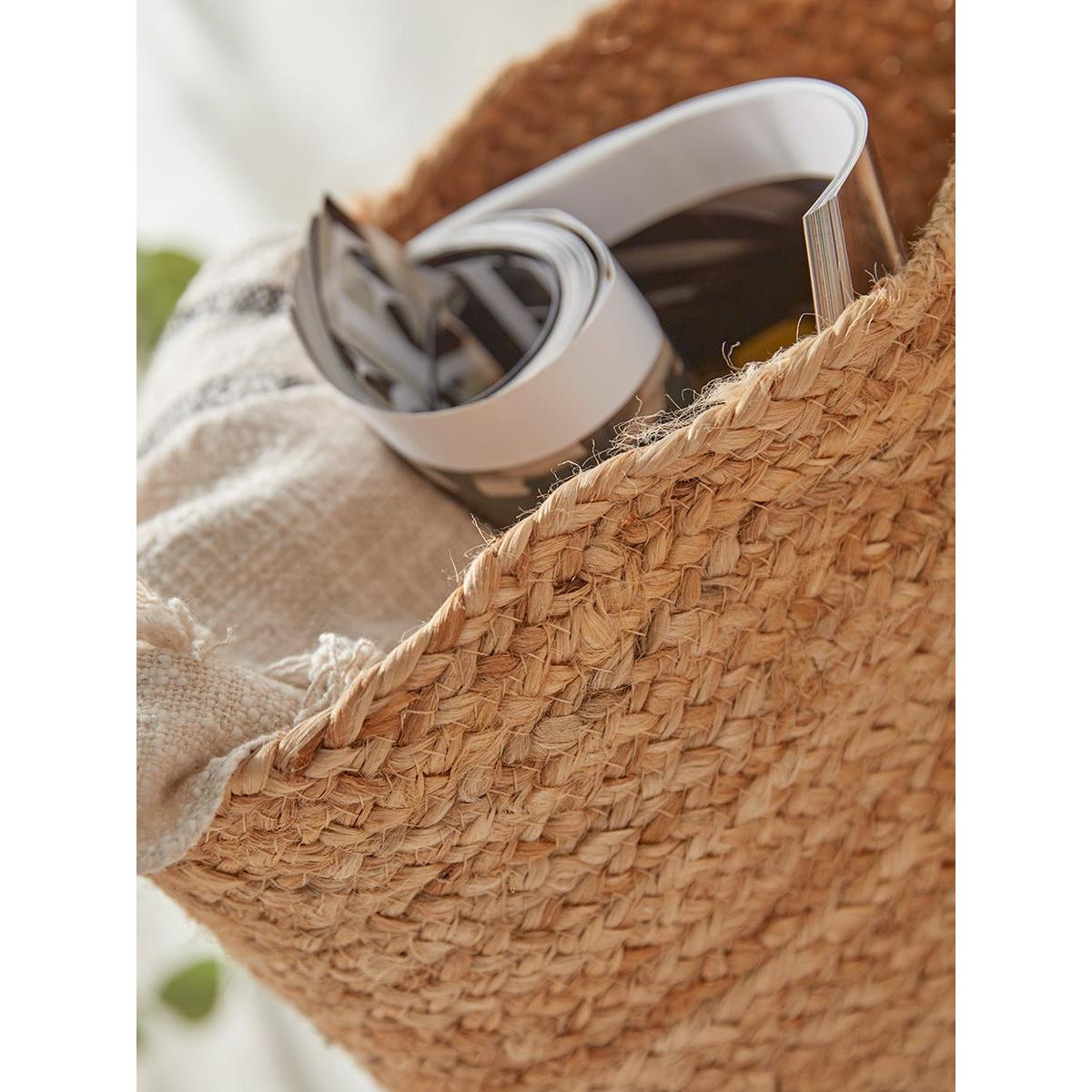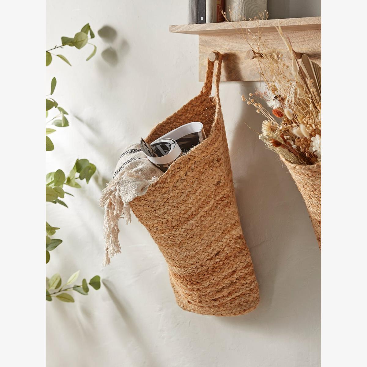 Storage with style is always a goal here at Cox and Cox and these woven baskets are a perfect example. Made from jute for a soft unstructured form, these baskets offer a capacious space in which to store towels and cushions or even laundry. Slim handles make it easy to hang them out of the way - they are perfect for pairing with our Shaker-style Wooden Coat Rack for a contemporary pared-back look in any room.  Available in two sizes.