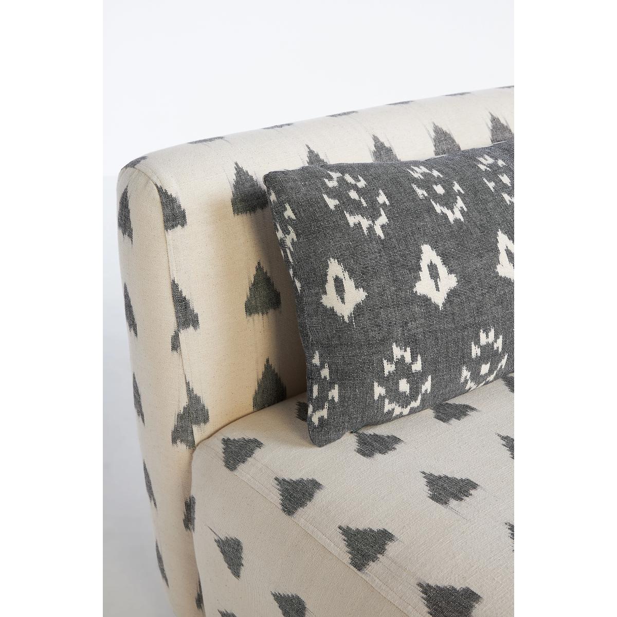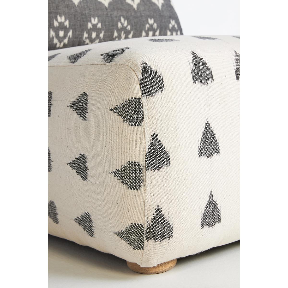 Upholstered in a globally inspired, woven ikat fabric, this cosy chair is not just an accent piece - but a statement in any space. * Woven ikat cotton upholstery: 100% cotton * Cushion content: Foam & fiber * Webbed seat and back construction * One removable throw cushion * Tropical hardwood frame and legs; natural finish * Professionally clean * This piece is intended for indoor use * No assembly required * Imported