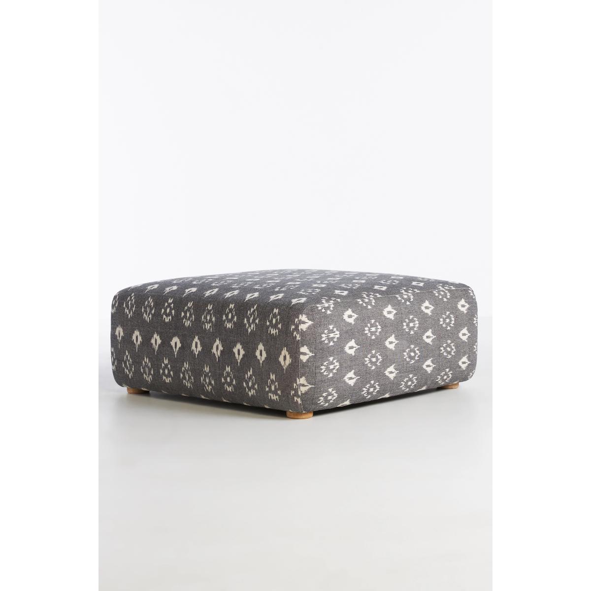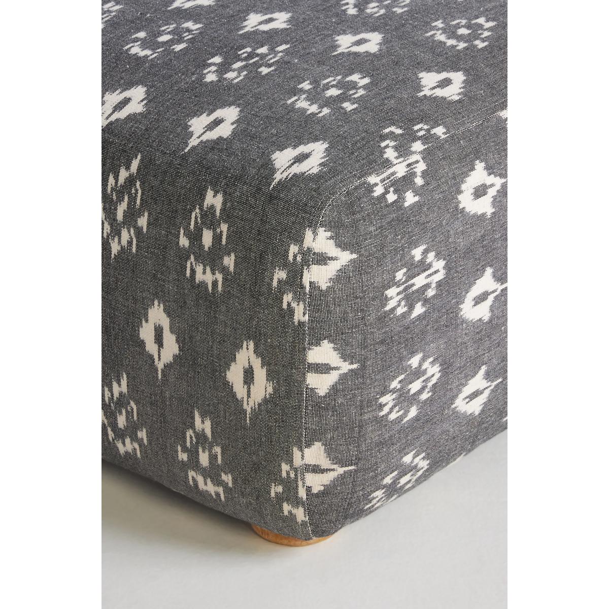 Upholstered in a globally inspired, woven ikat fabric, this eye-catching ottoman adds unexpected style to your living space. * 100% Woven ikat cotton upholstery * Foam and fiber fill * Tropical hardwood frame and legs; Natural finish * Furniture pieces weighing over 30kg include delivery to your room of choice and packaging removal * Professionally clean * This piece is intended for indoor use * No assembly required * Imported