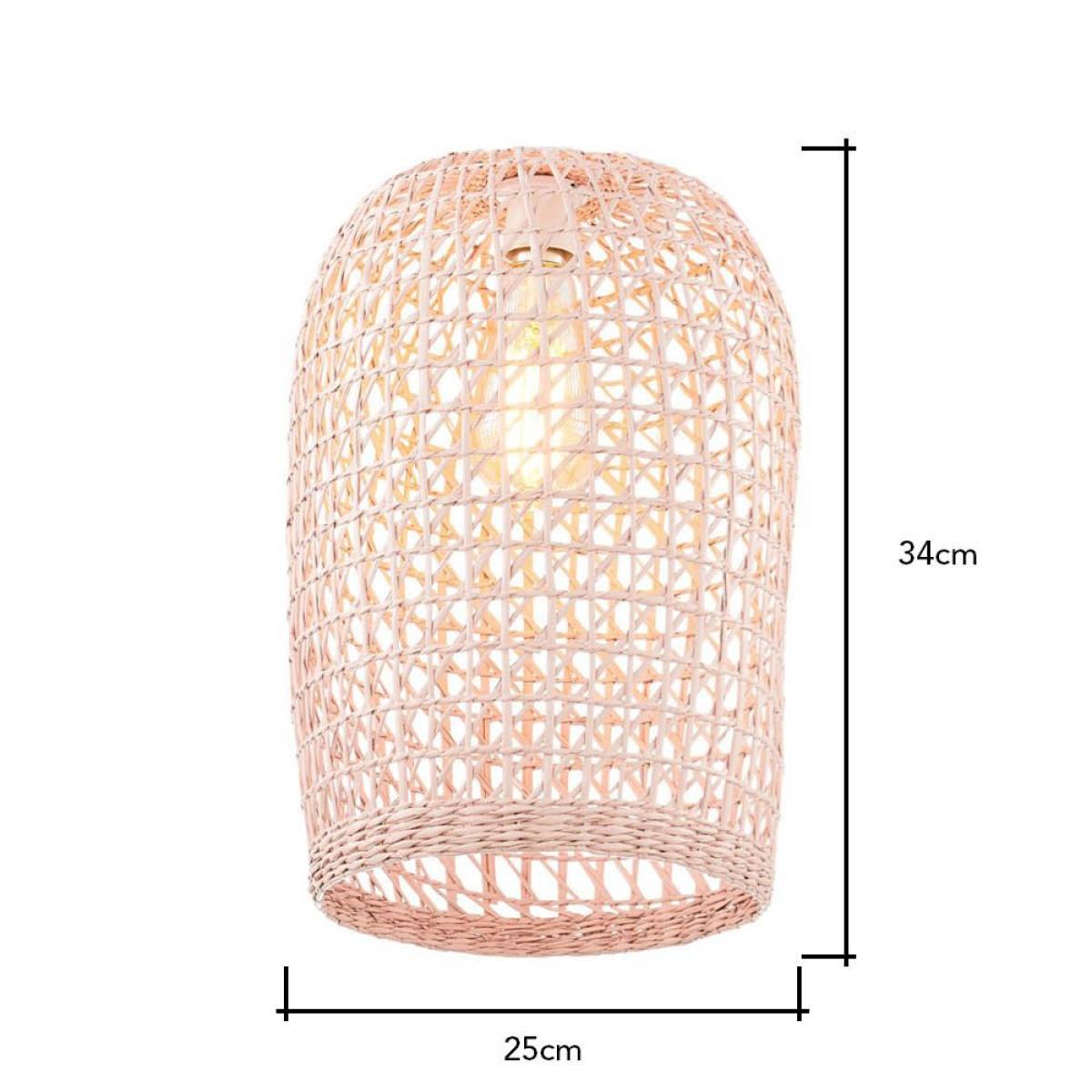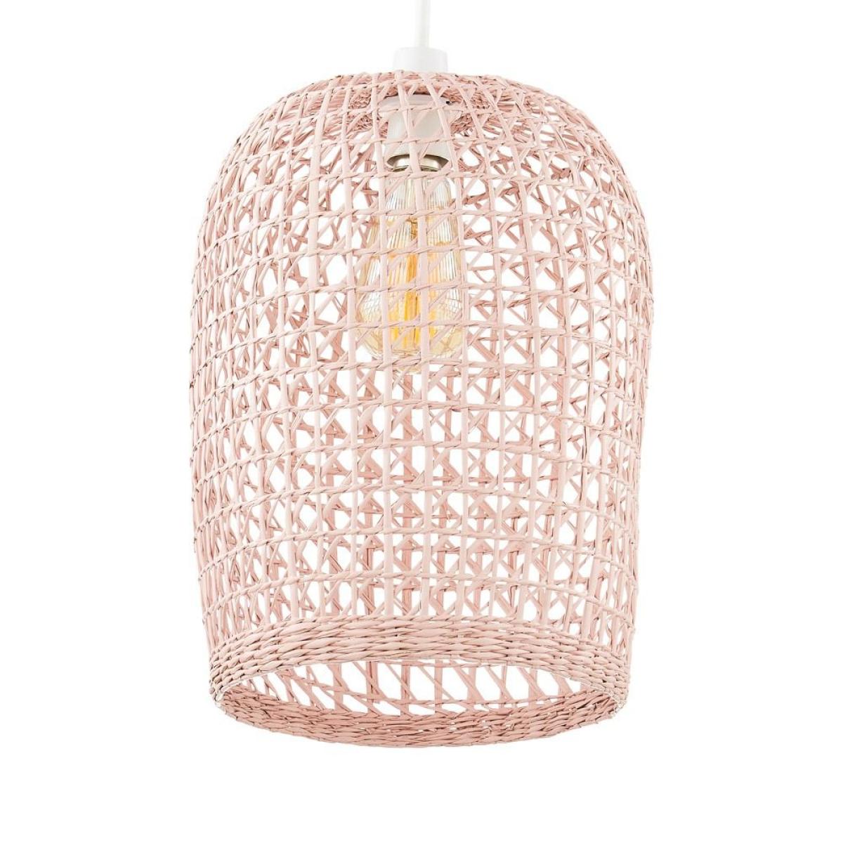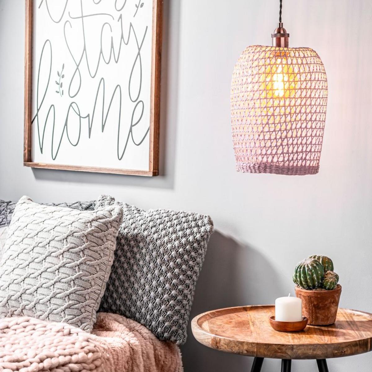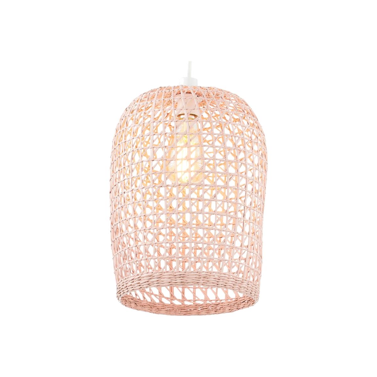 I love the woven rattan shade for its natural texture and muted pink tone, which add warmth and femininity to a space. It works especially well in boho, Scandinavian, or coastal-inspired interiors, where organic materials and soft colours are celebrated. For styling, consider pairing it with neutral or pastel colour schemes to let the shade stand out, and hang it at different heights in a cluster for a layered look. It’s perfect in living rooms or bedrooms where you want ambient, cosy lighting, and also works well in kitchens or dining areas for a relaxed, inviting atmosphere. Practical tip: complement with light bulbs that emit warm light to enhance the softness of the pink hue and natural rattan weave.